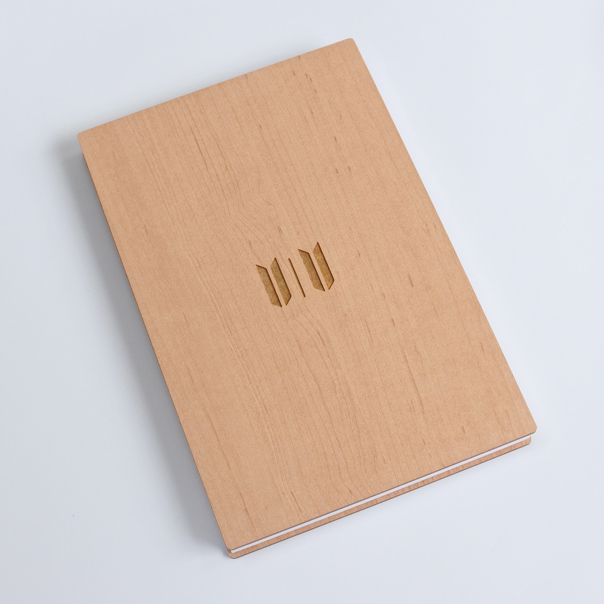 レーザー加工を施した木材(MDF)の表紙は、温もりを感じられる風合いで、手にしっとりと馴染みます。