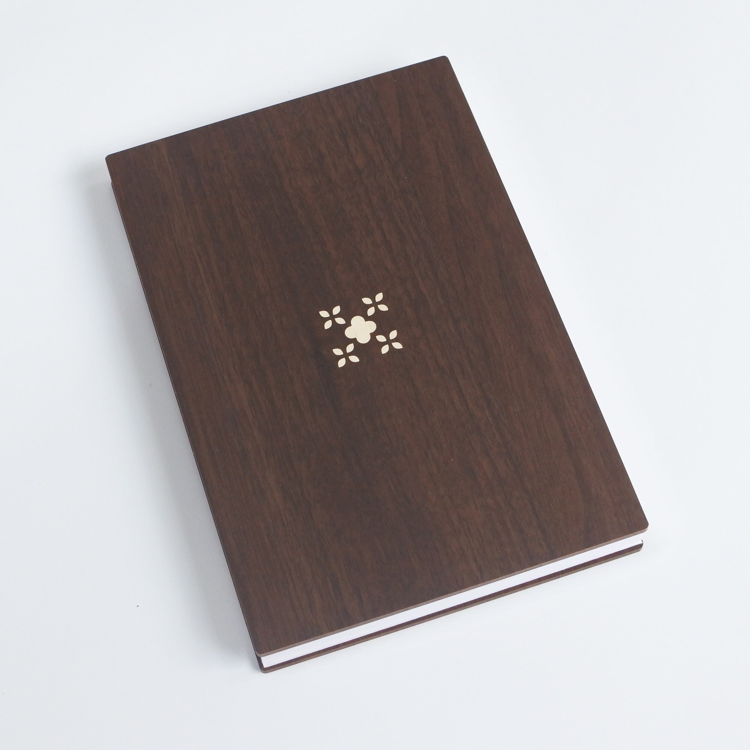 レーザー加工を施した木材(MDF)の表紙は、温もりを感じられる風合いで、手にしっとりと馴染みます。