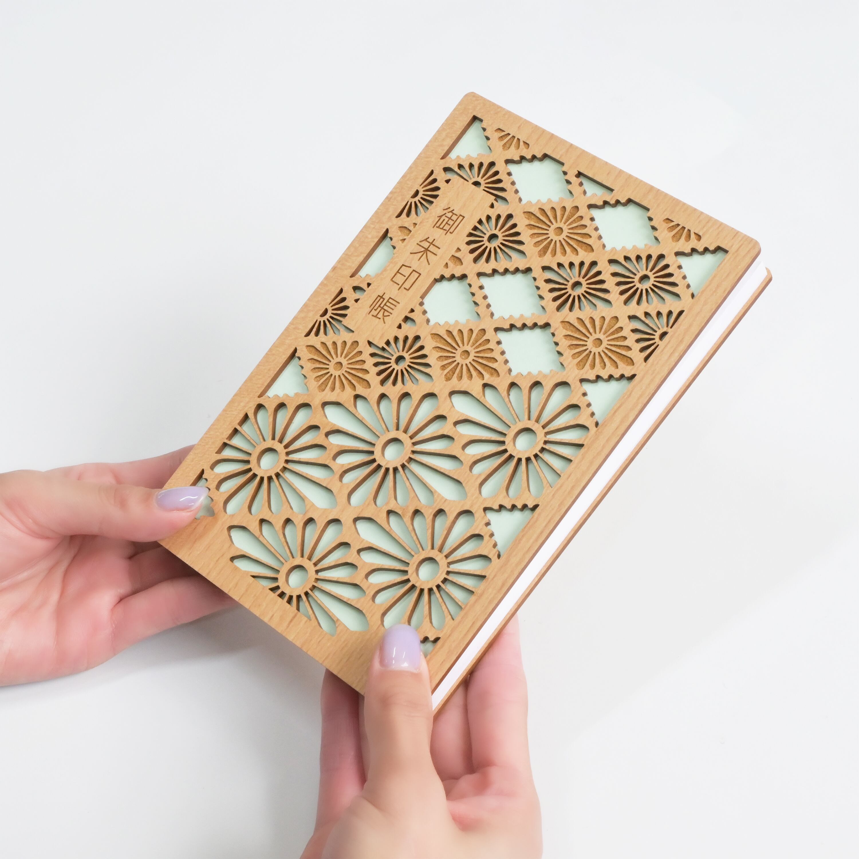 「菱菊」和モダン 御朱印帳 — 和の伝統模様を取り入れた、やさしさ かわいらしさ を感じられる 木製御朱印帳