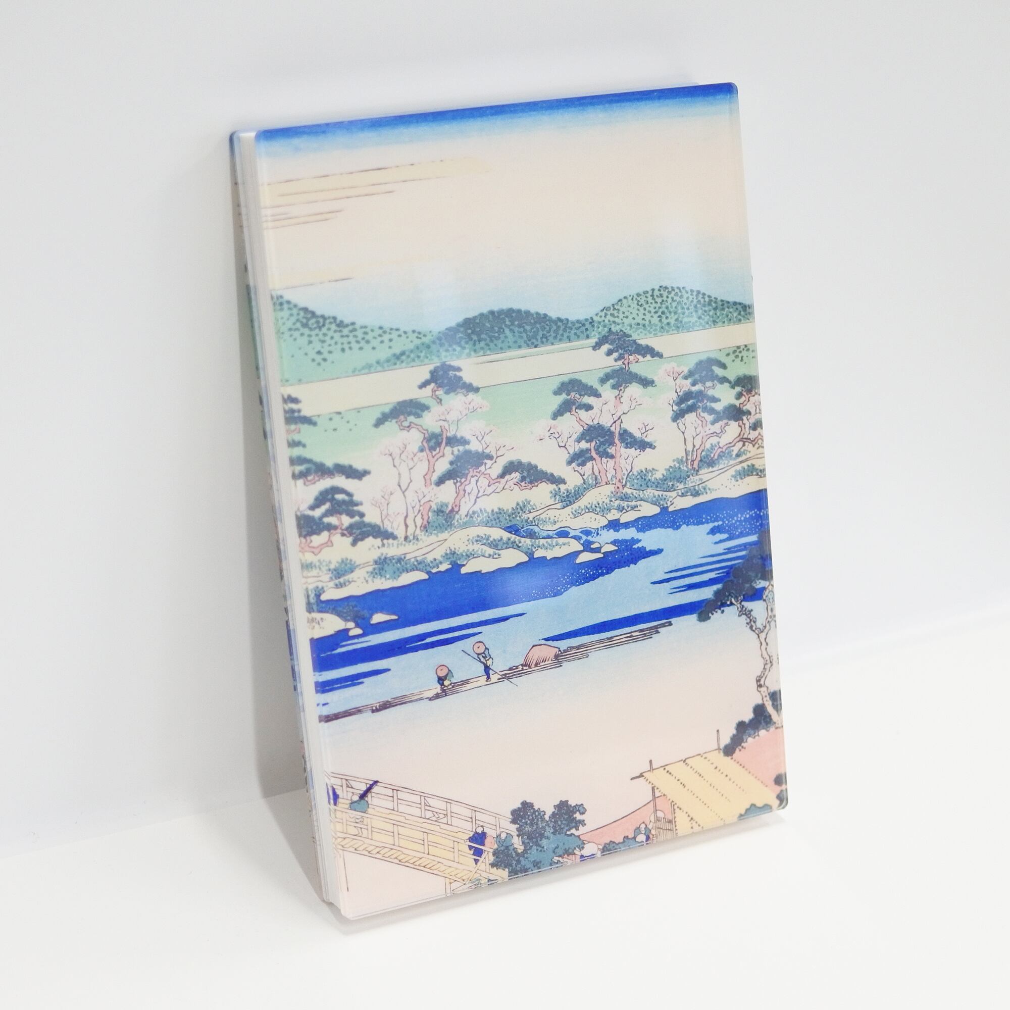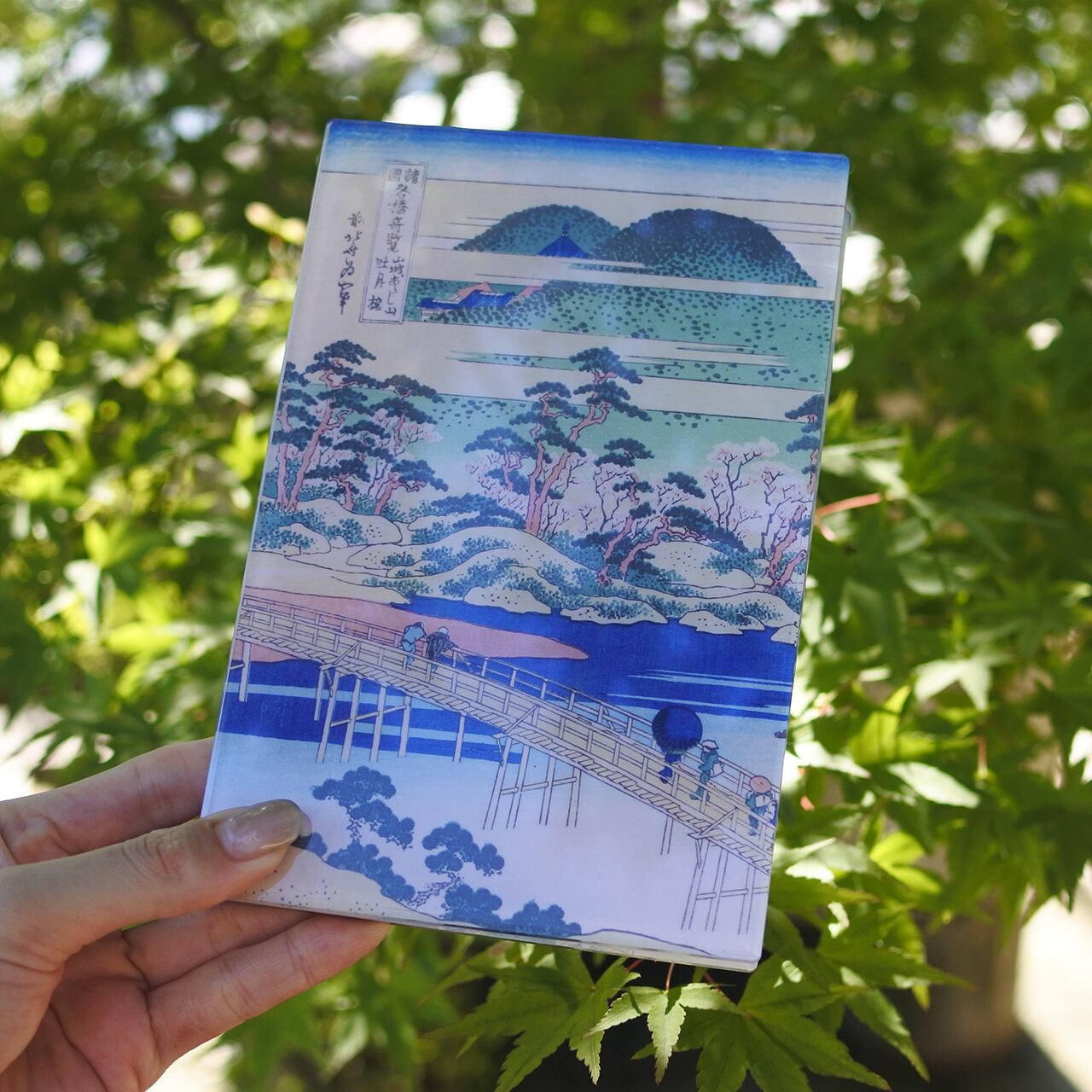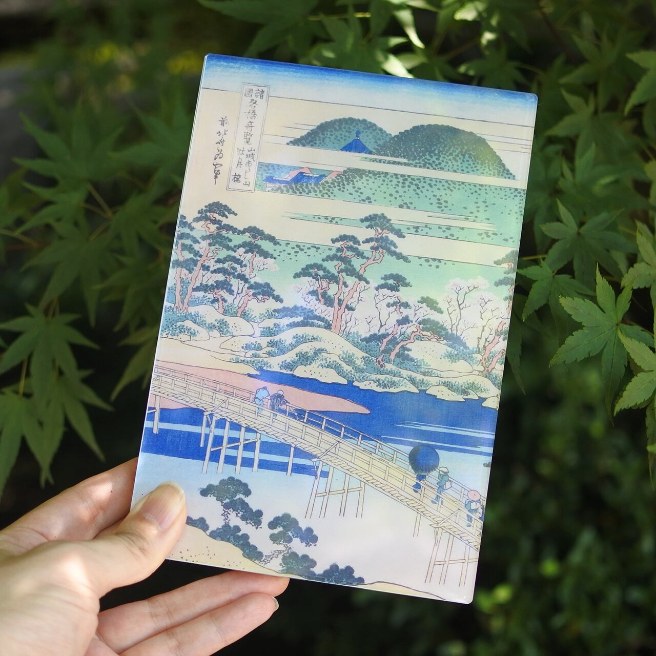 葛飾北斎の名作「山城あらし山 吐月橋」を表紙にあしらった、再生アクリル製の御朱印帳。