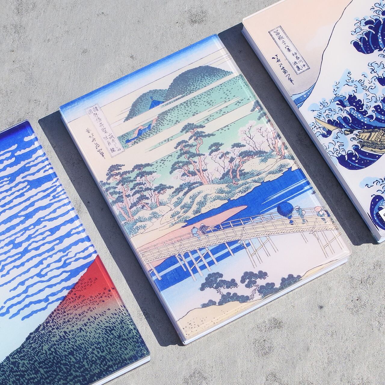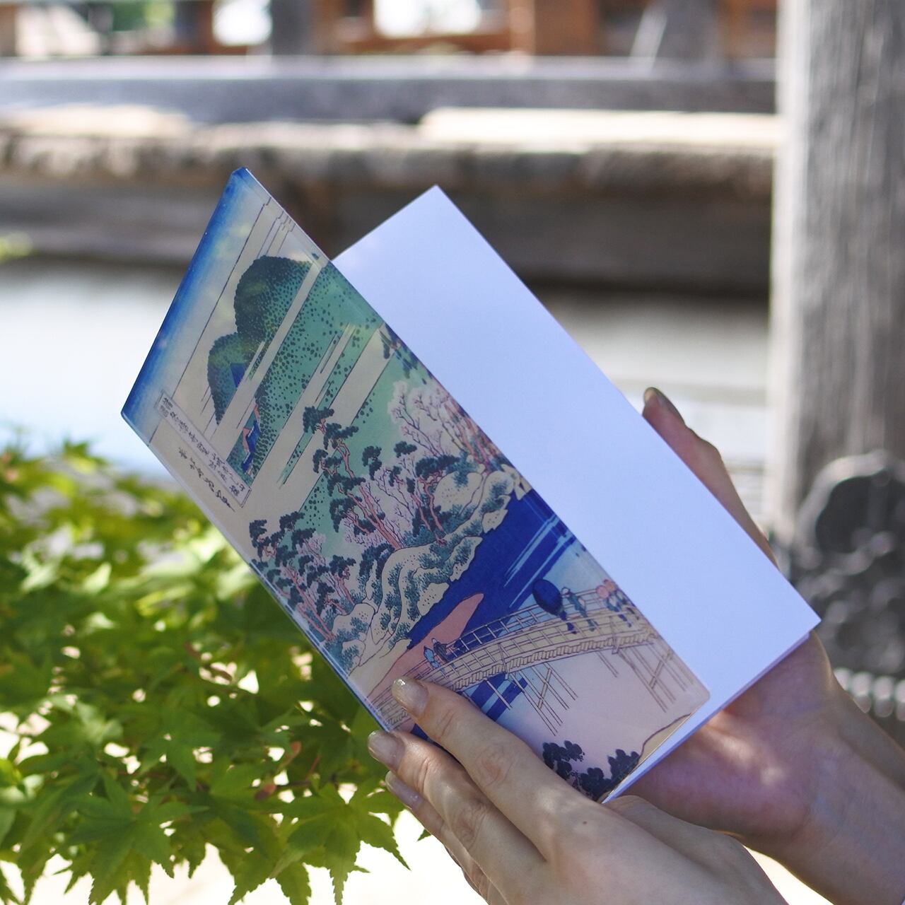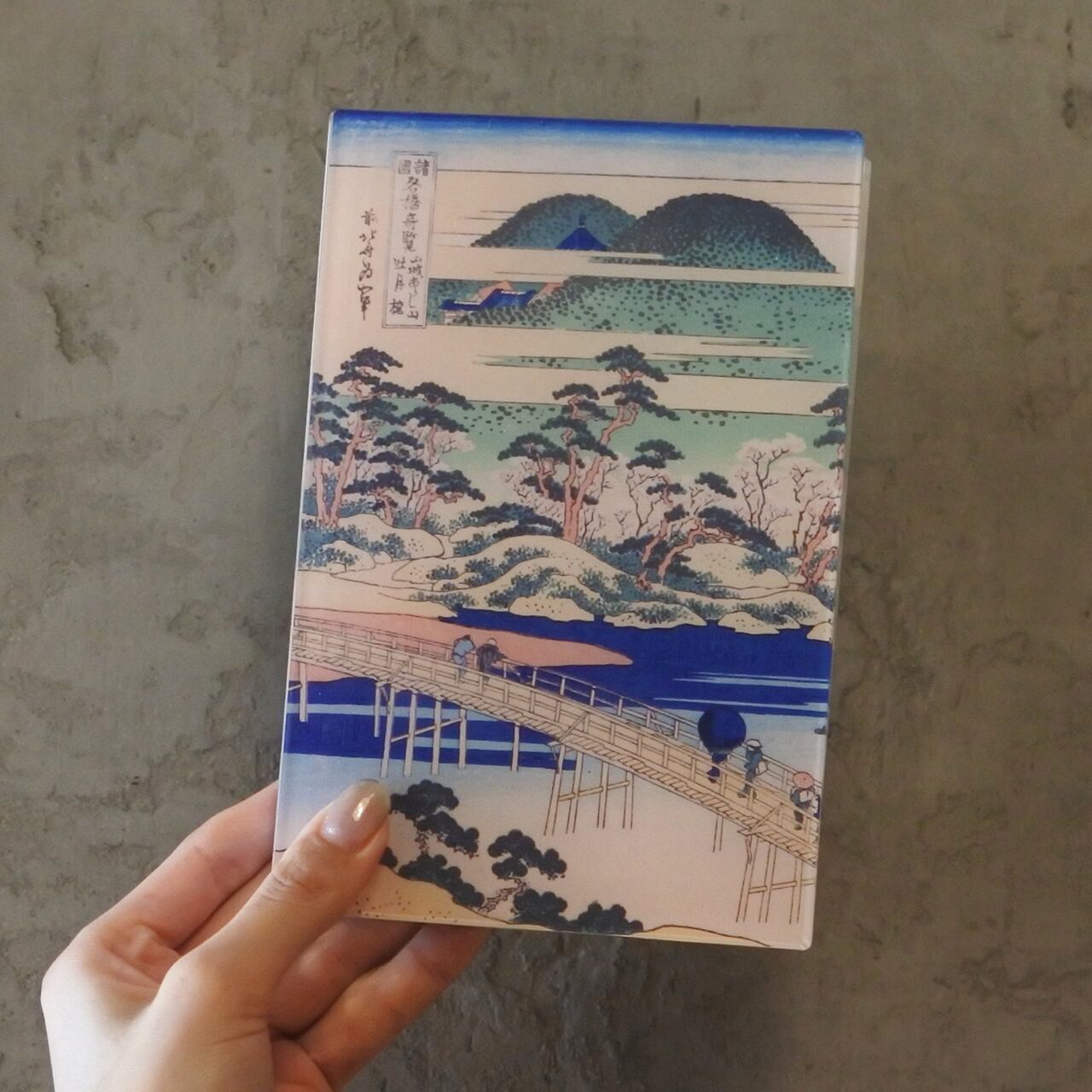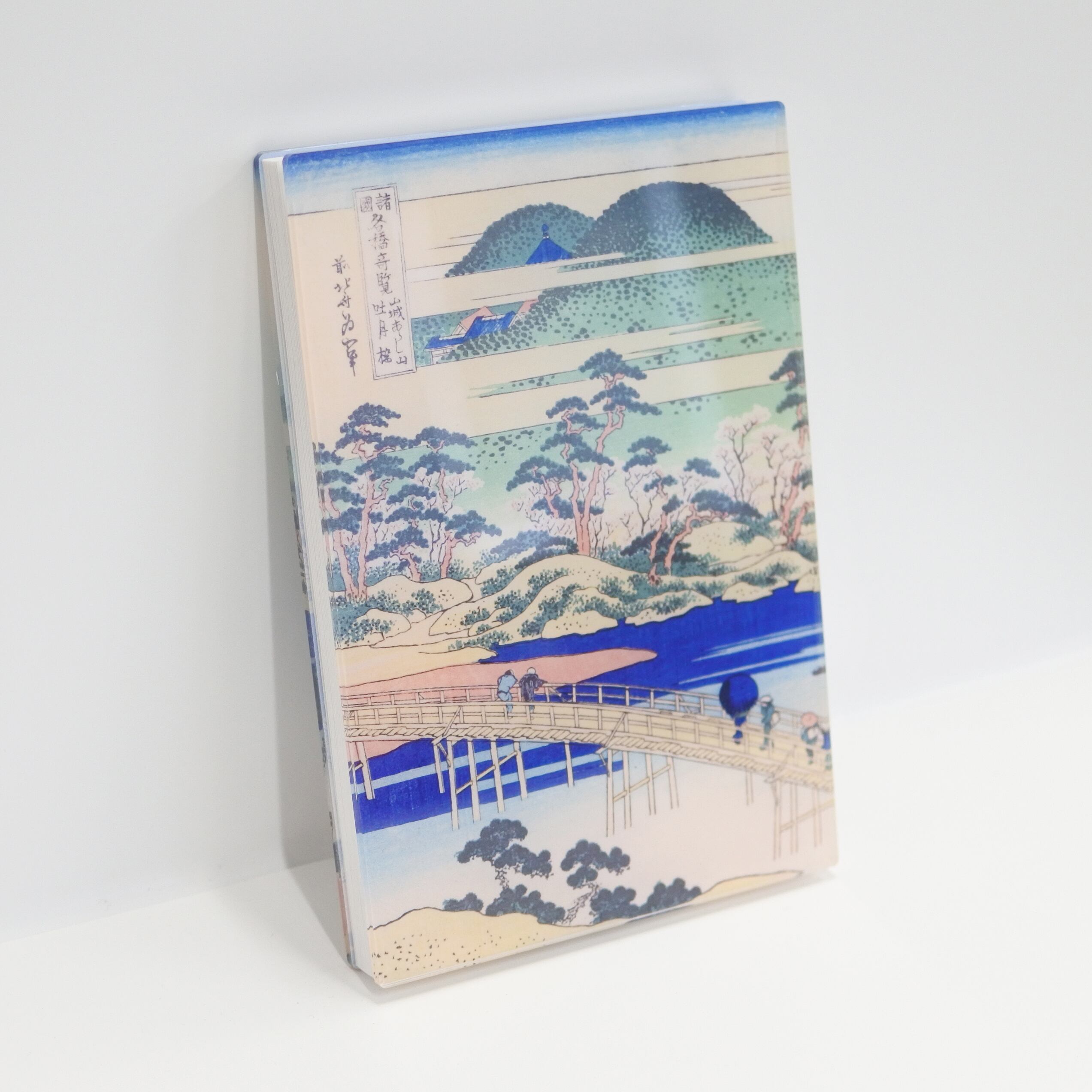 葛飾北斎の名作「山城あらし山 吐月橋」を表紙にあしらった、再生アクリル製の御朱印帳。