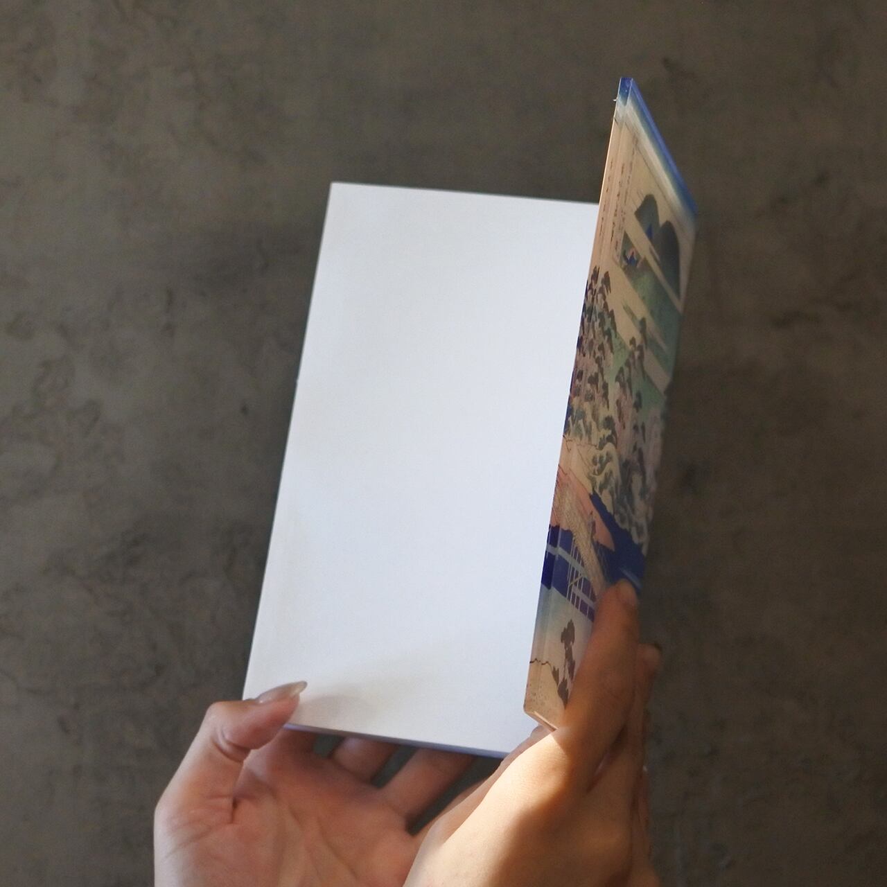 再生アクリルを使用し、美しさと耐久性を兼ね備えたデザインに仕上げました。静寂と風情を感じる吐月橋――作品の魅力を持ち歩きながら、御朱印巡りを楽しめます。耐久性がありながらも軽やかで、御朱印巡りのお供にぴったり。北斎ファンはもちろん、洗練されたデザインを好む方にもおすすめの特別な一冊です。