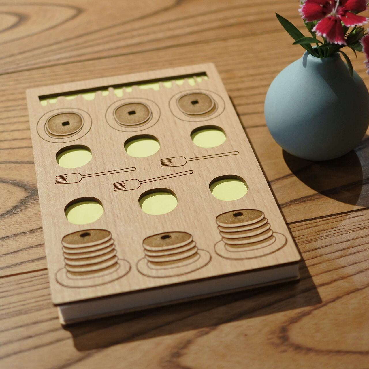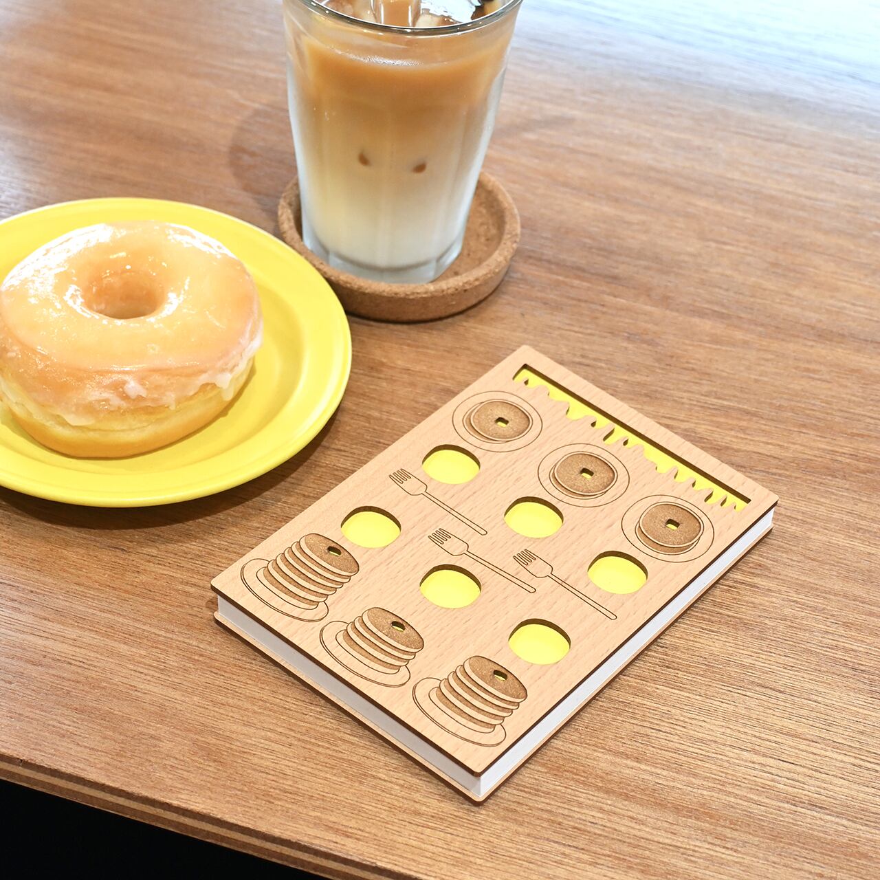 レーザー加工を施した木材(MDF)の表紙は、温もりを感じられる風合いで、手にしっとりと馴染みます。