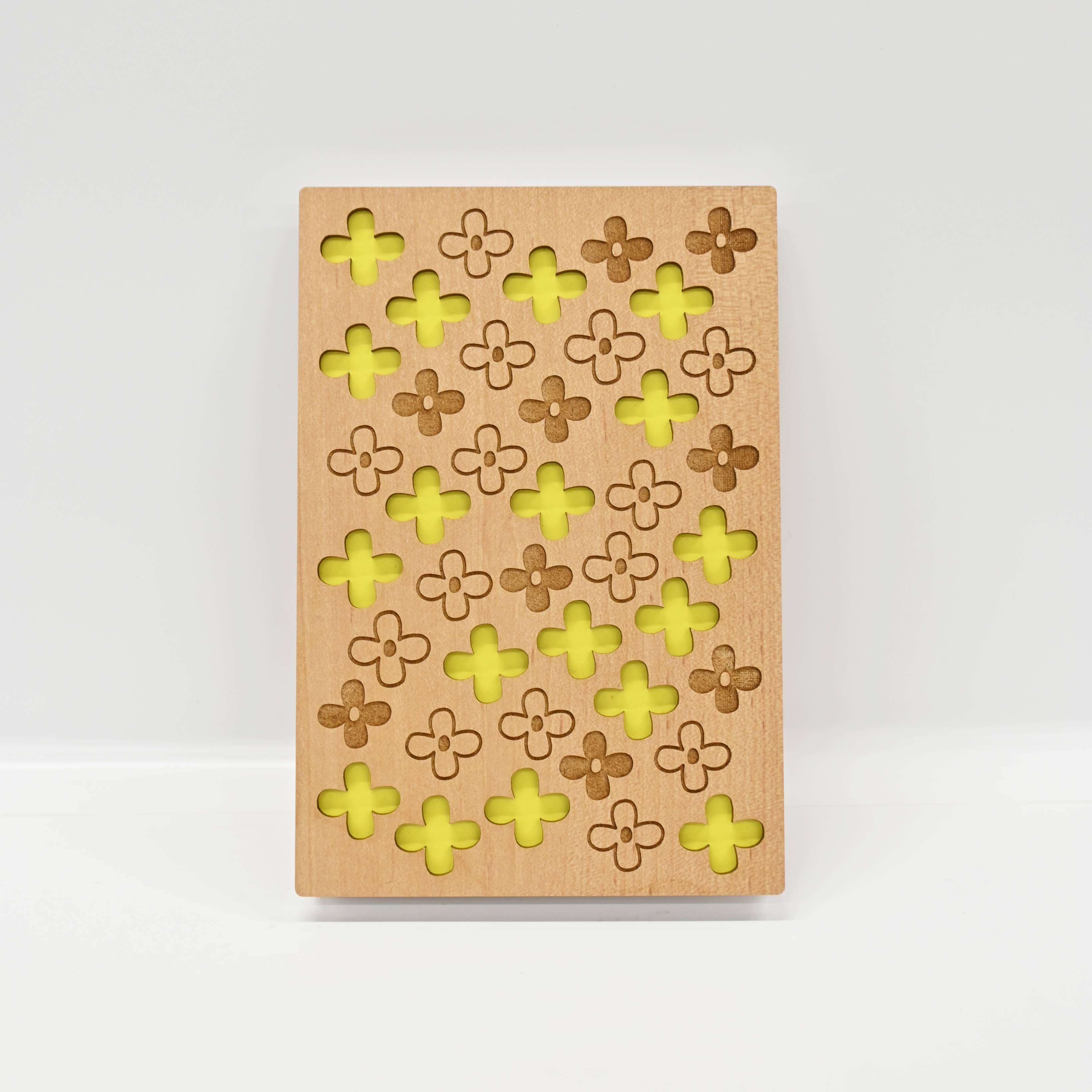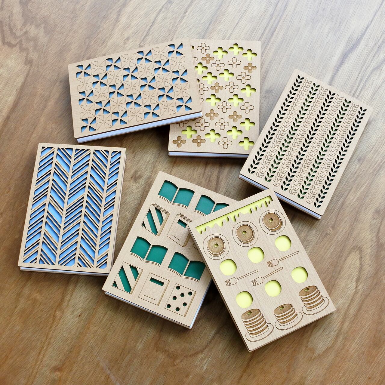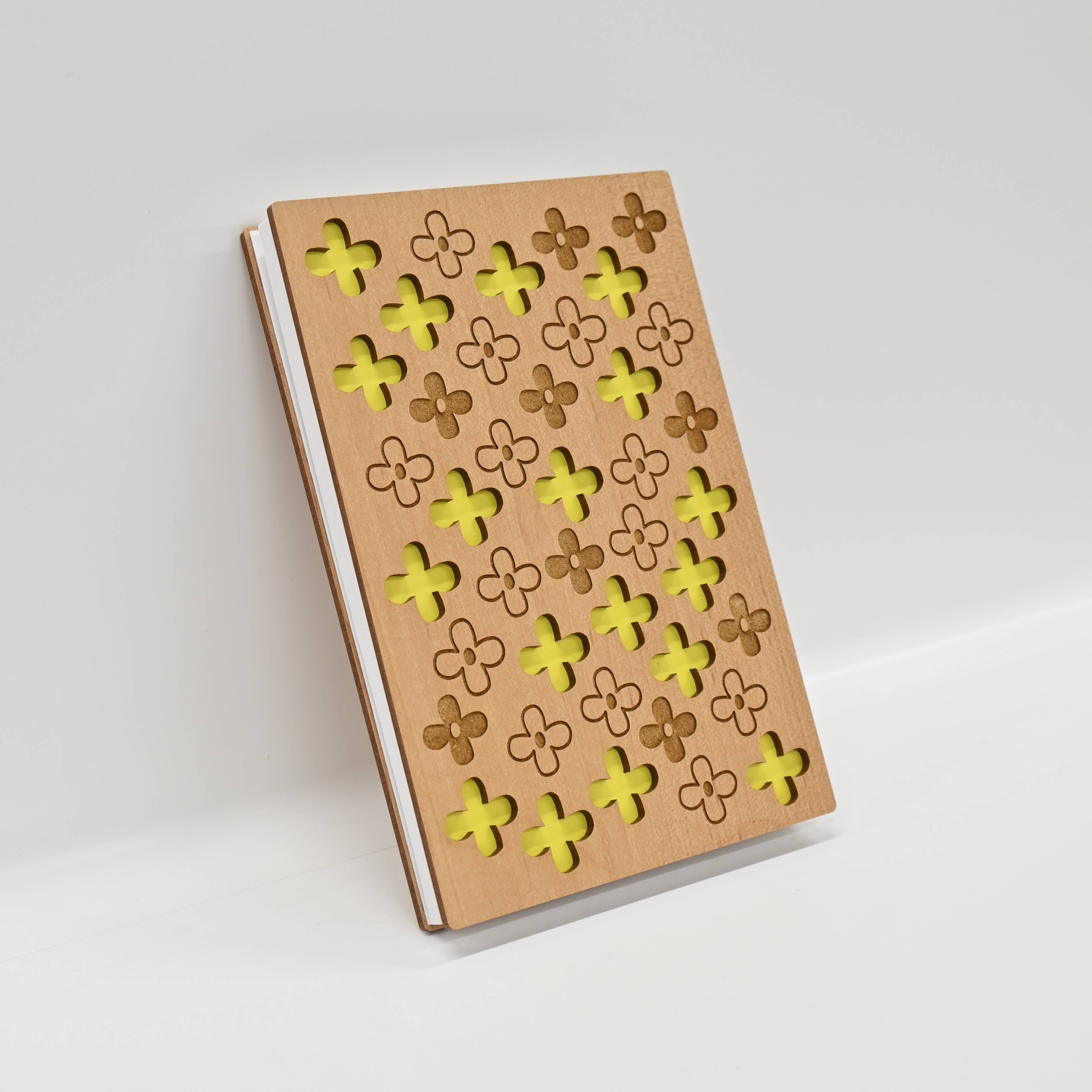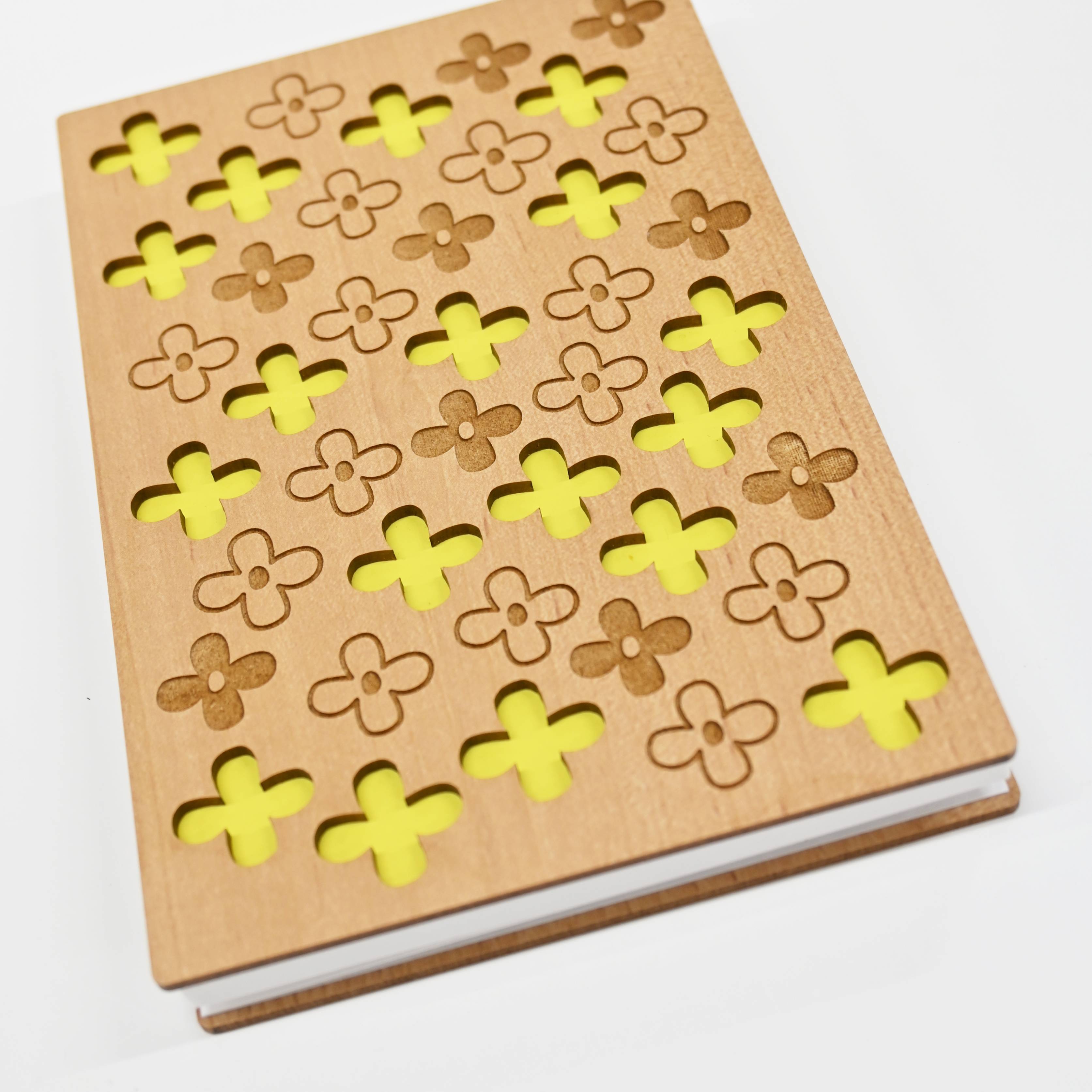 レーザー加工を施した木材(MDF)の表紙は、温もりを感じられる風合いで、手にしっとりと馴染みます。