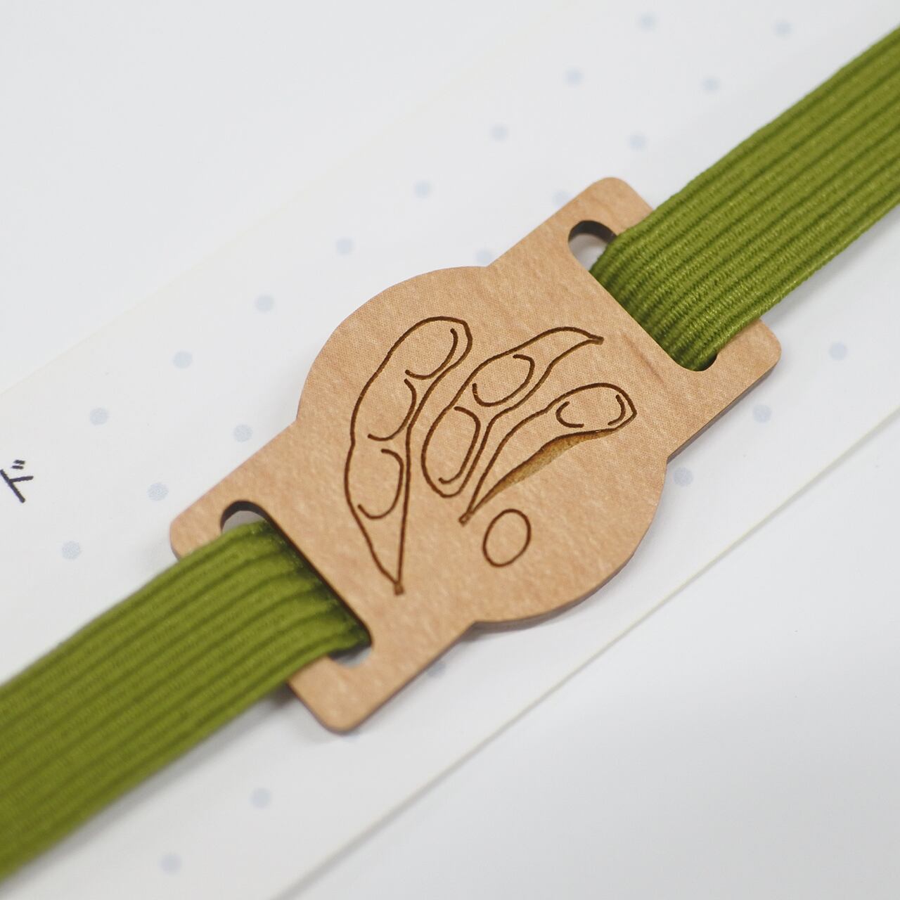 「枝豆」木製御朱印帳バンド — 木製の御朱印帳が広がらないようにしっかりと留める 「御朱印帳バンド」。ユニークな柄が揃っています。