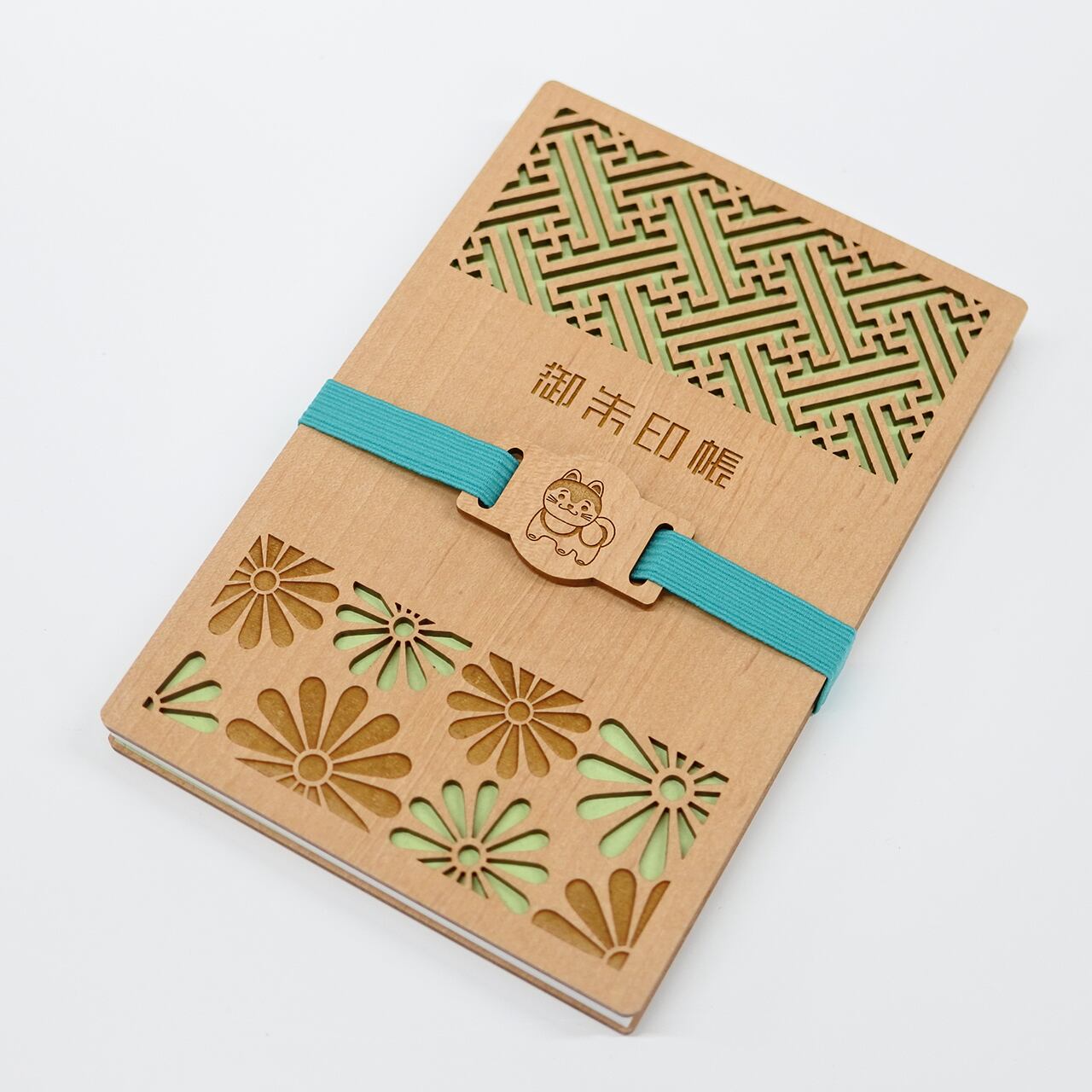 お気に入りの柄で、御朱印帳をしっかりまとめる木製の「御朱印帳バンド」。