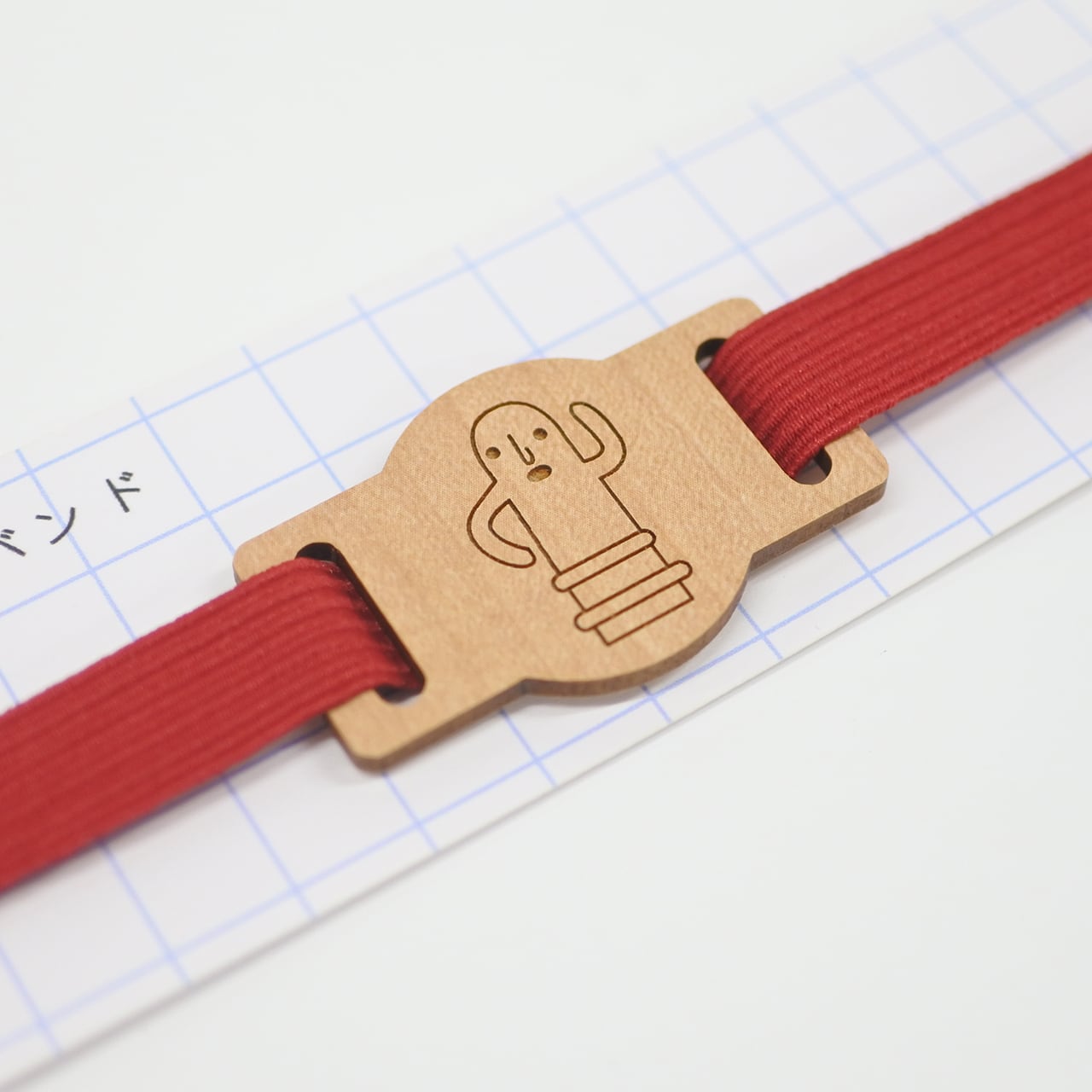 本体はレーザー加工を施した木材(MDF)を使用し、温かみのある質感と耐久性を兼ね備えています。ゴムはライクラ®ファイバーのカラーゴムを使用。しっかりフィットしながらも柔らかく、長く使っても伸びにくいです。