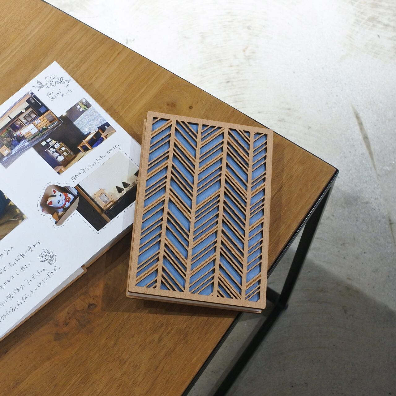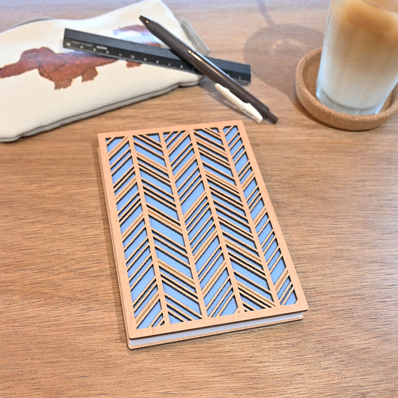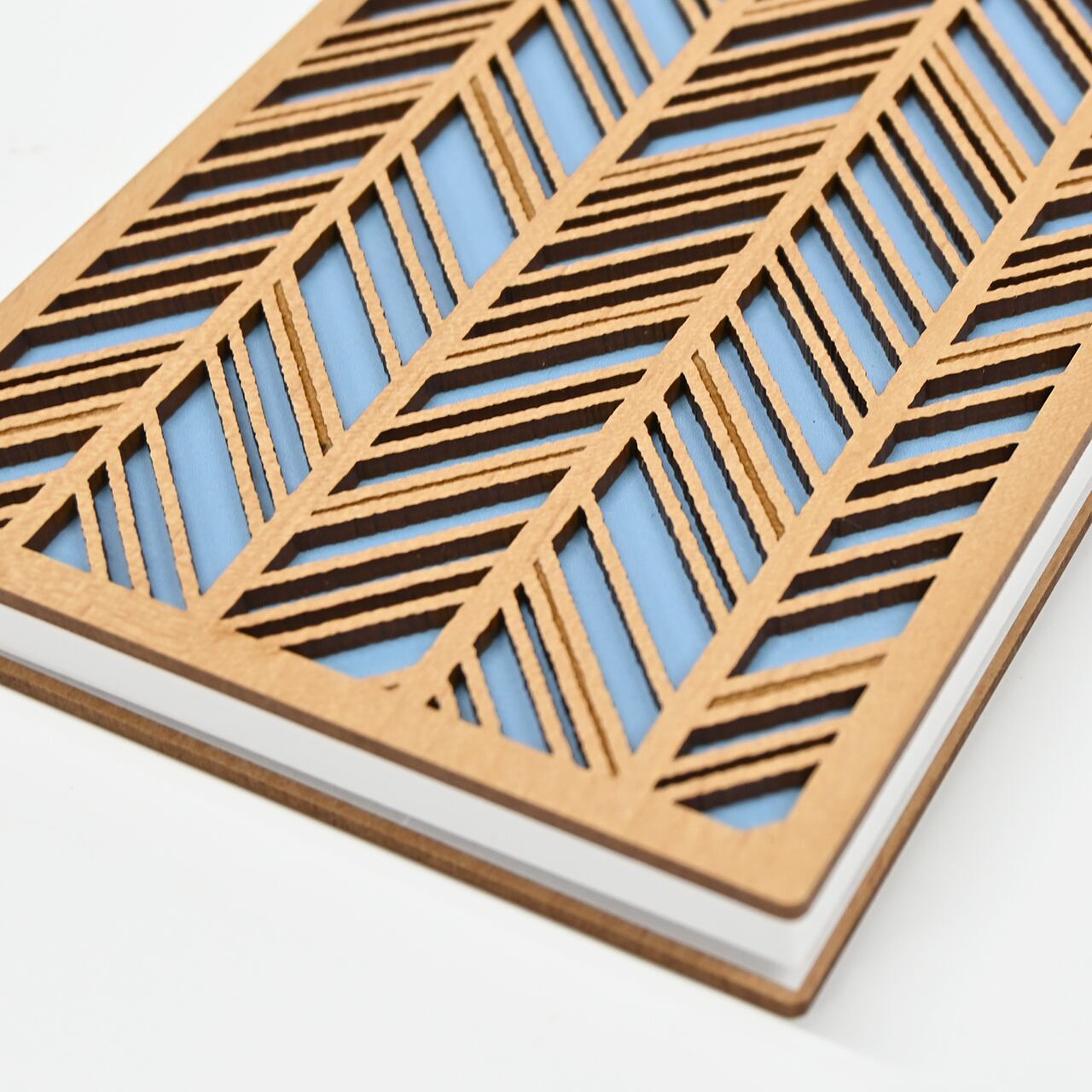 レーザー加工を施した木材(MDF)の表紙は、温もりを感じられる風合いで、手にしっとりと馴染みます。