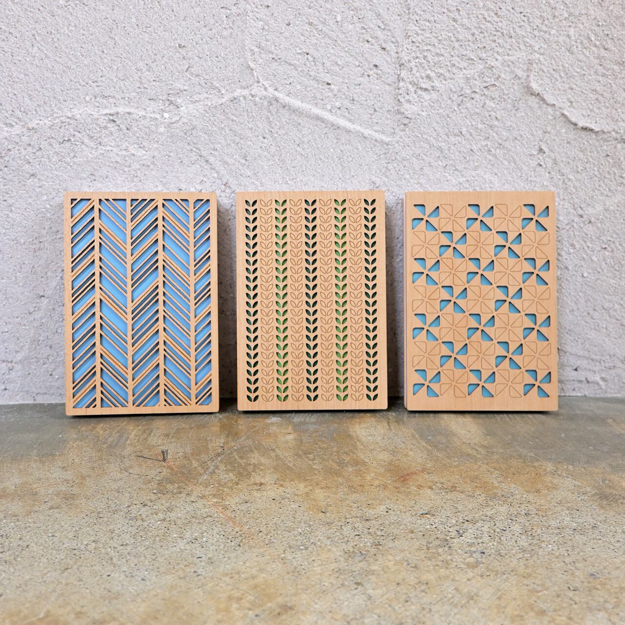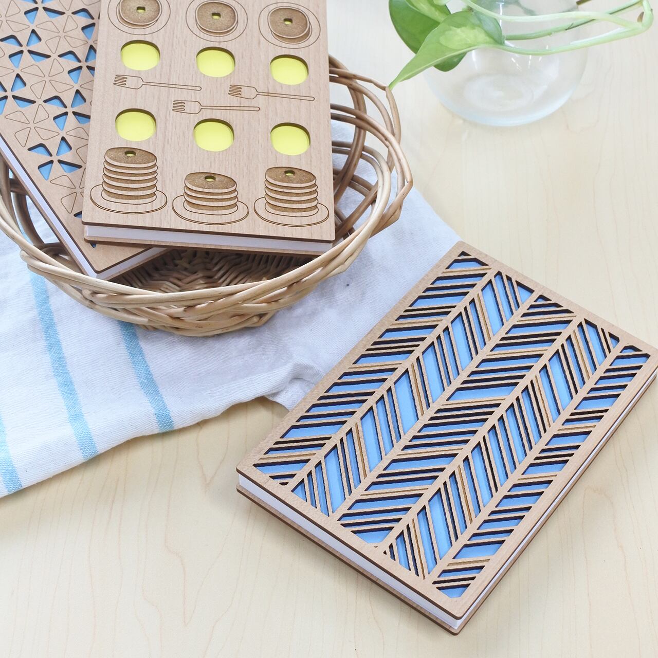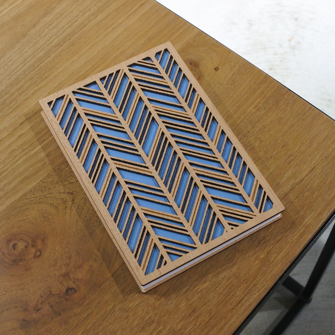 レーザー加工を施した木材(MDF)の表紙は、温もりを感じられる風合いで、手にしっとりと馴染みます。