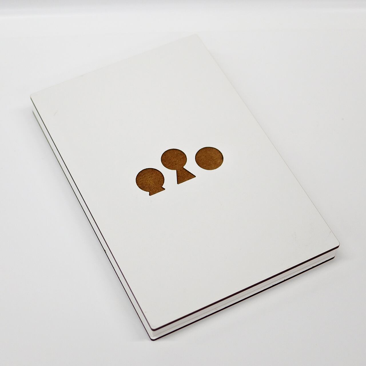 レーザー加工を施した木材(MDF)の表紙は、温もりを感じられる風合いで、手にしっとりと馴染みます。