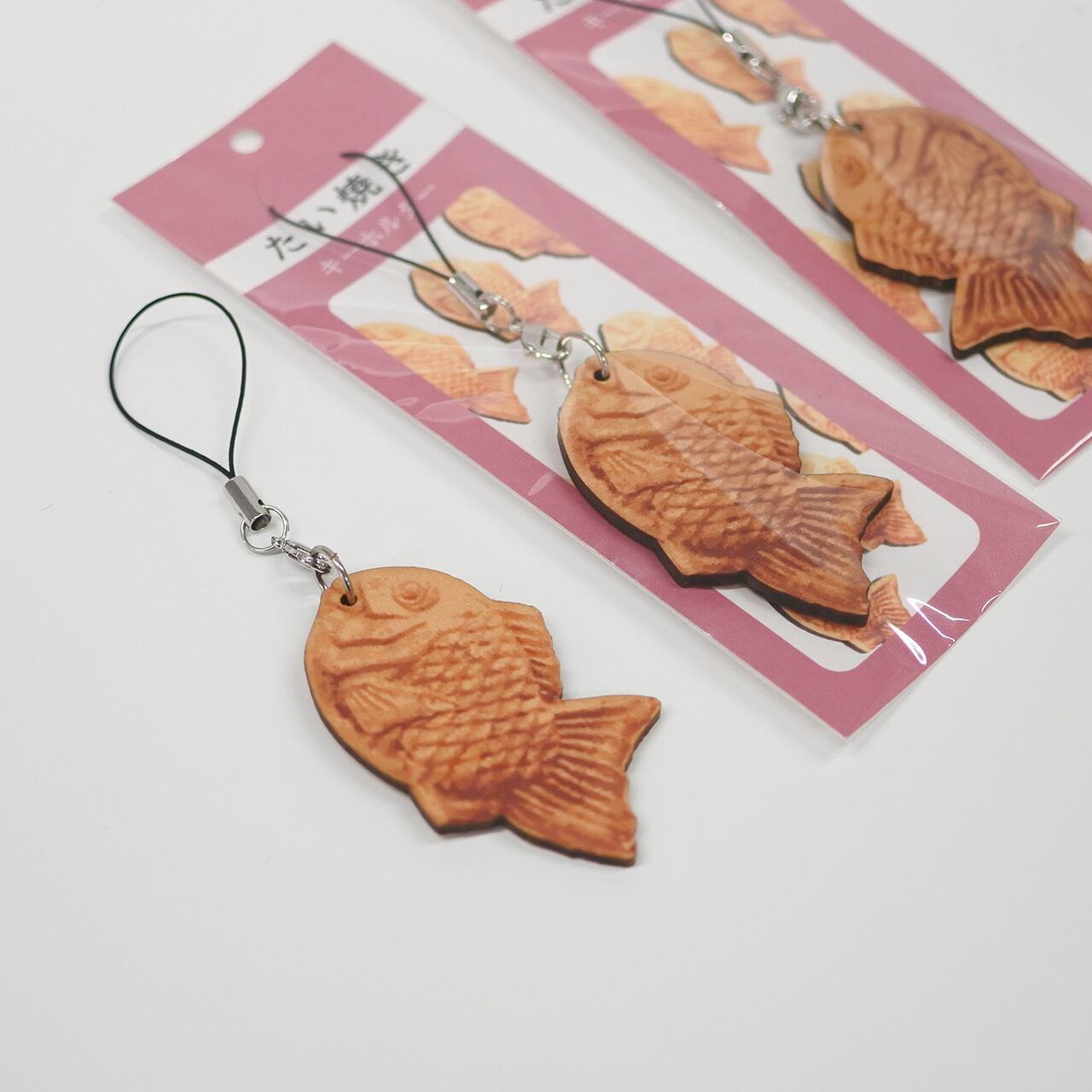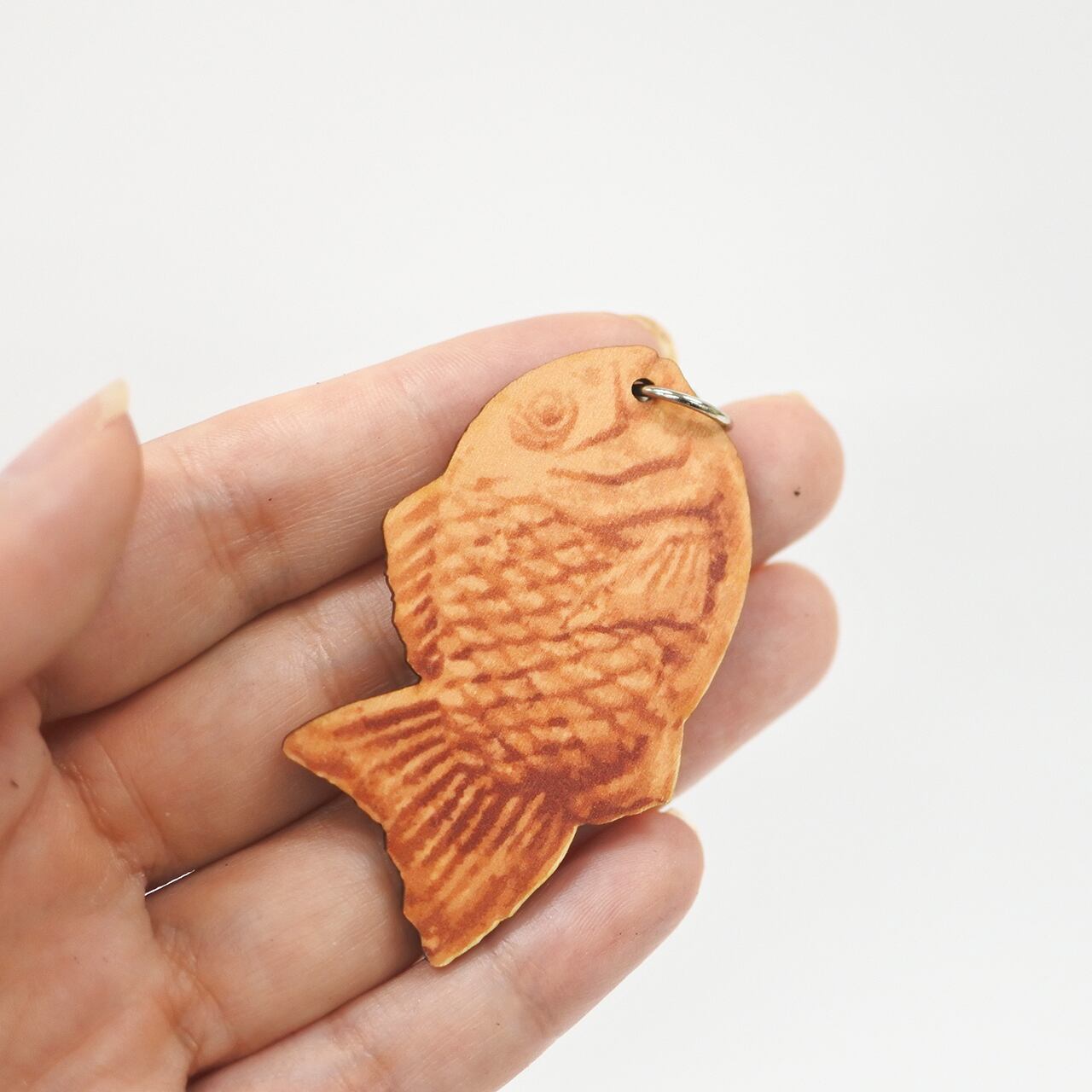 「たい焼き」柄の木製キーホルダー 木製なのに、ほぼ実物!?ユニークな食べ物キーホルダー