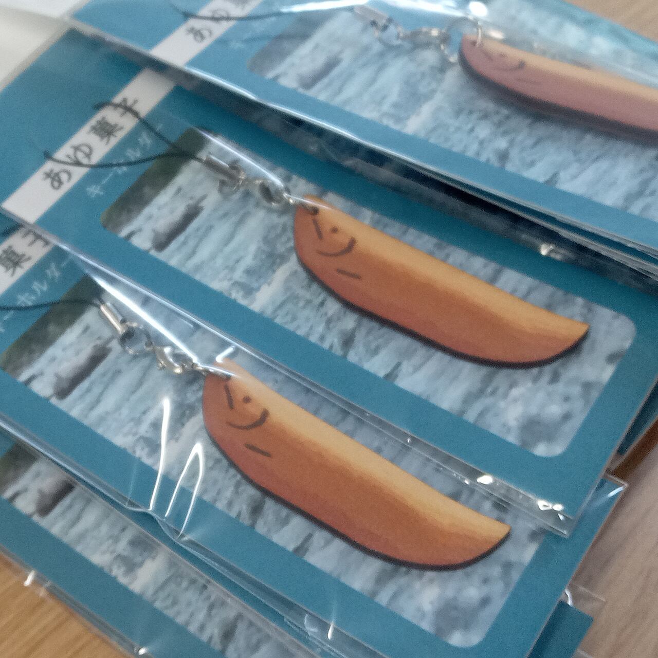 焼きたてふんわり、香ばしい香りが漂ってきそうな「あゆ菓子」モチーフのキーホルダー。
