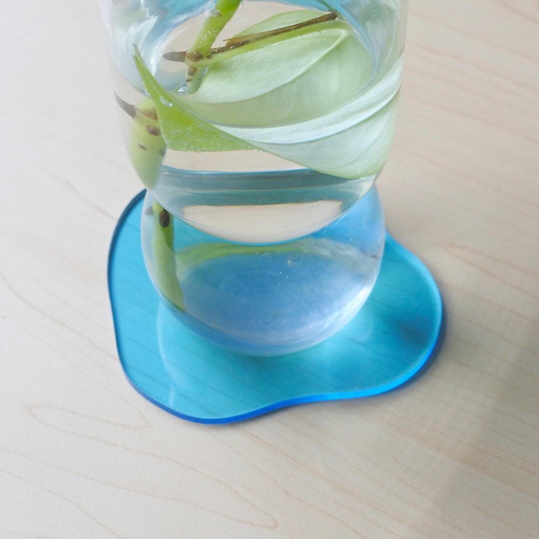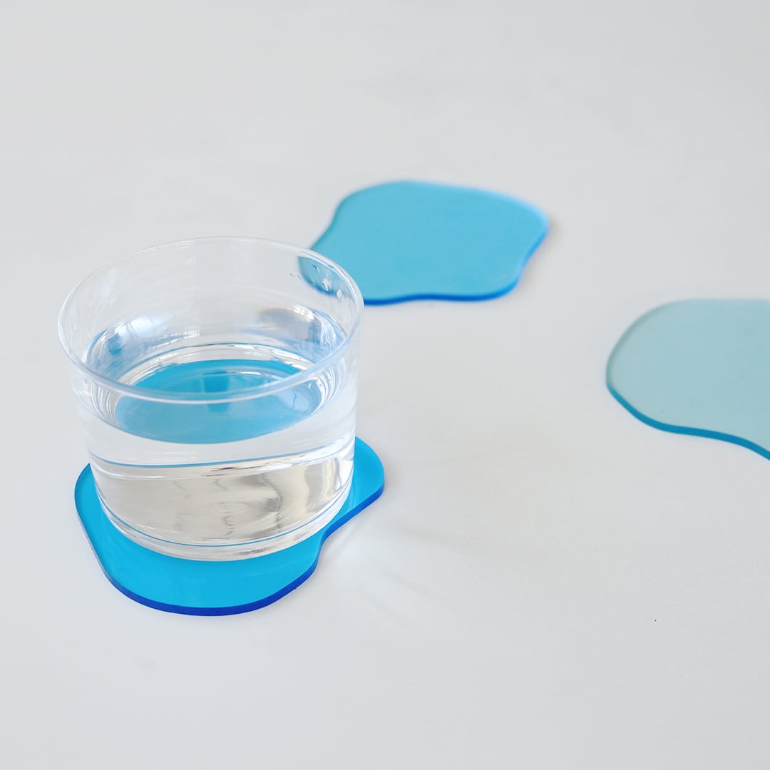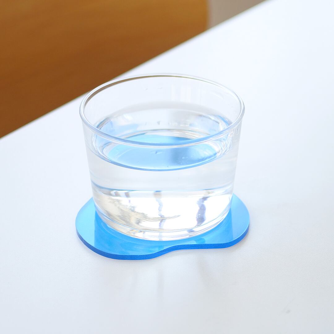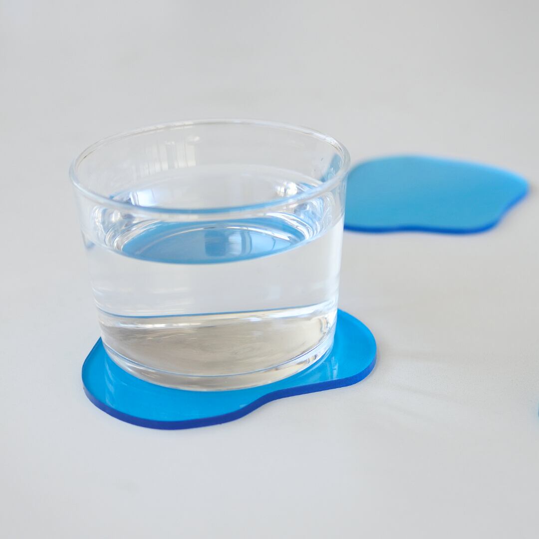「みずたまり」アクリルコースターは、水をこぼしたような自然なかたちと色合いの、