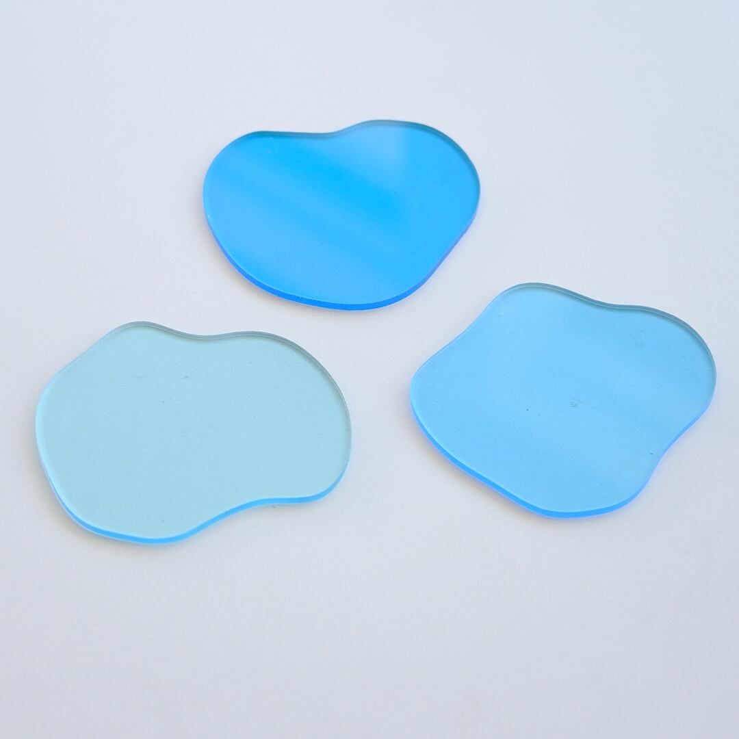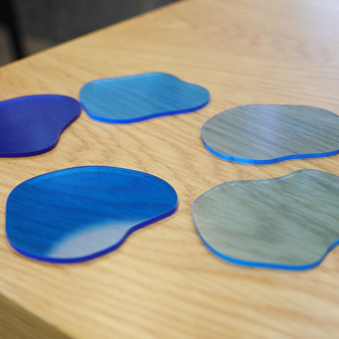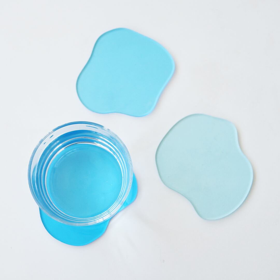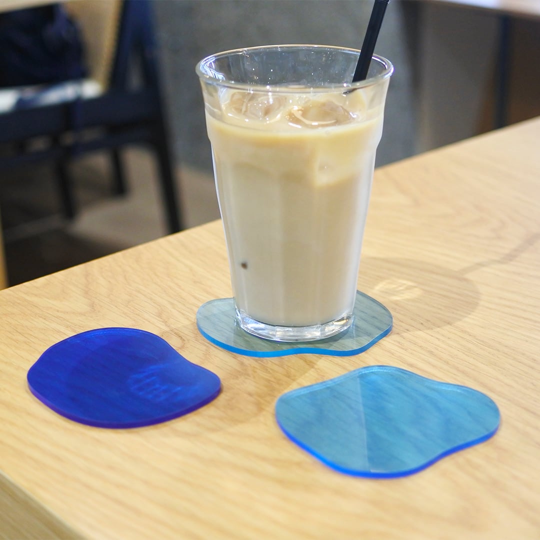 「みずたまり」アクリルコースターは、水をこぼしたような自然なかたちと色合いの、