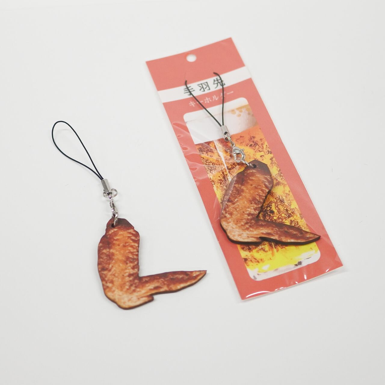 「手羽先」 木製キーホルダー 木製なのに、ほぼ実物!? ユニーク 食べ物キーホルダー 居酒屋シリーズ