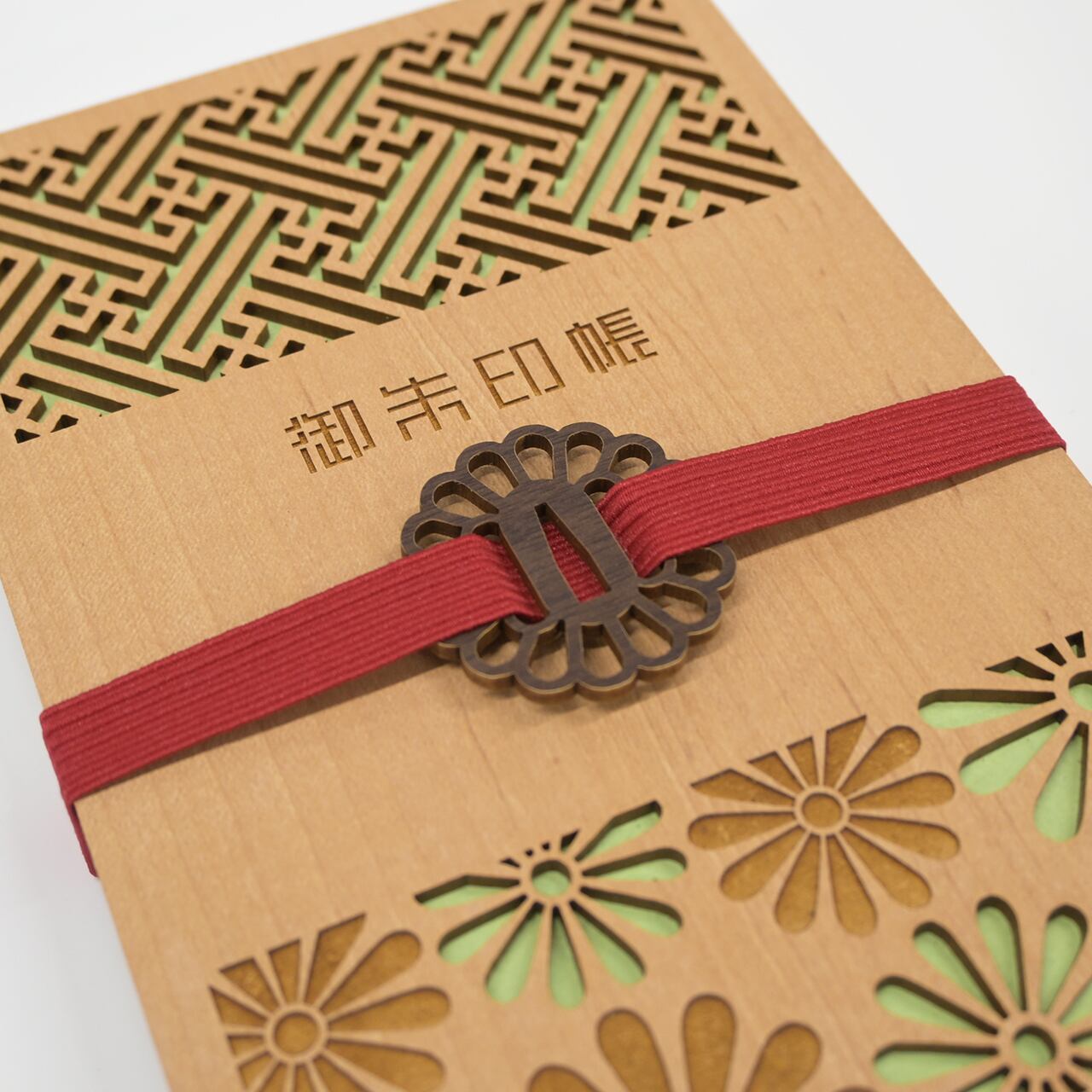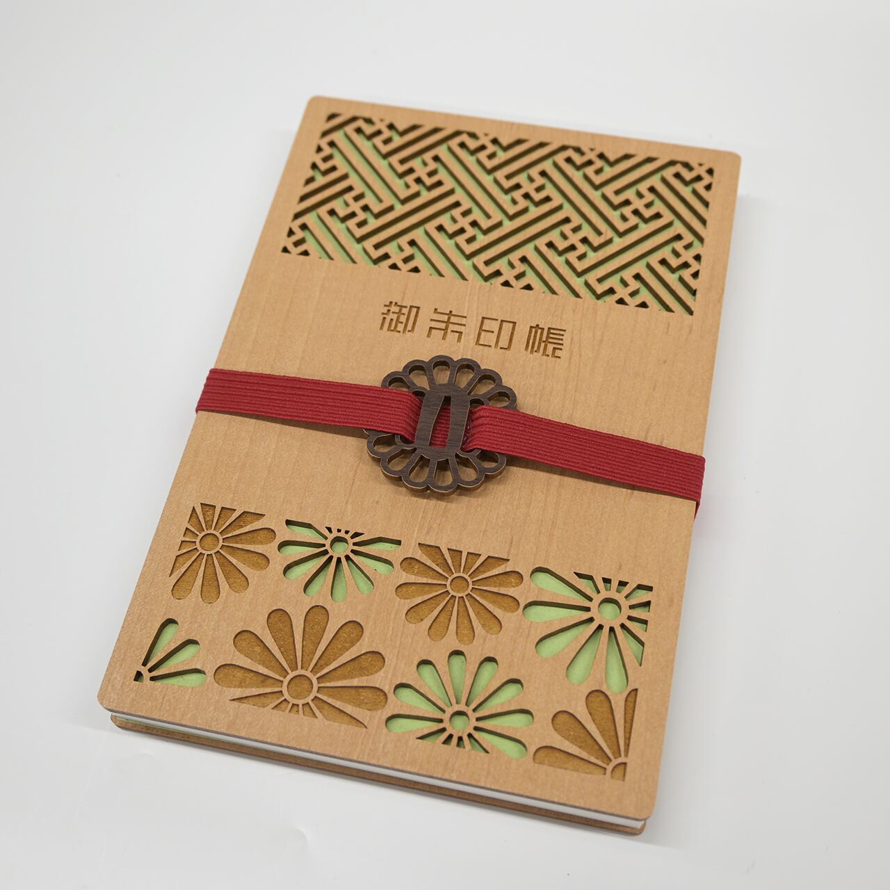 木製の御朱印帳は開きやすいですが、バンドを使えばしっかり閉じて形をキープ。バッグの中でページが折れたり傷ついたりするのを防げます。