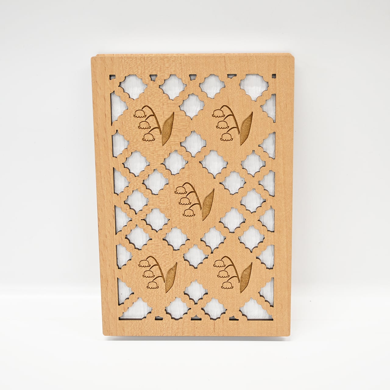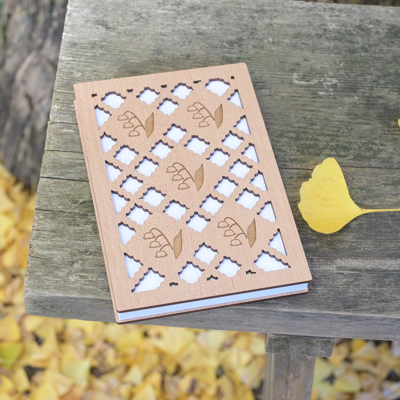 スズラン好きの方へ「スズラン」木製御朱印帳 — 小さめサイズでかわいい、気軽に持ち歩ける「小さな御朱印帳」シリーズ