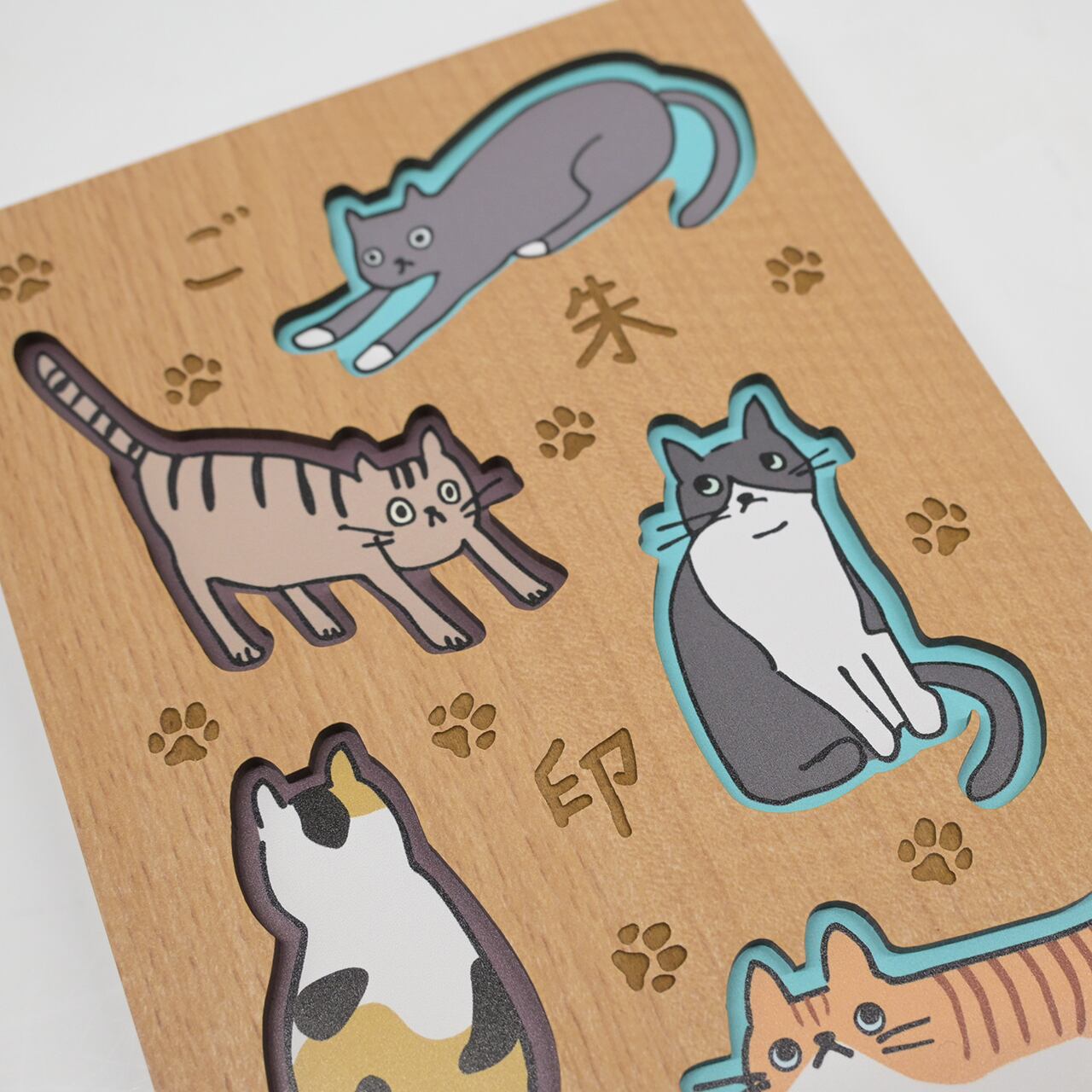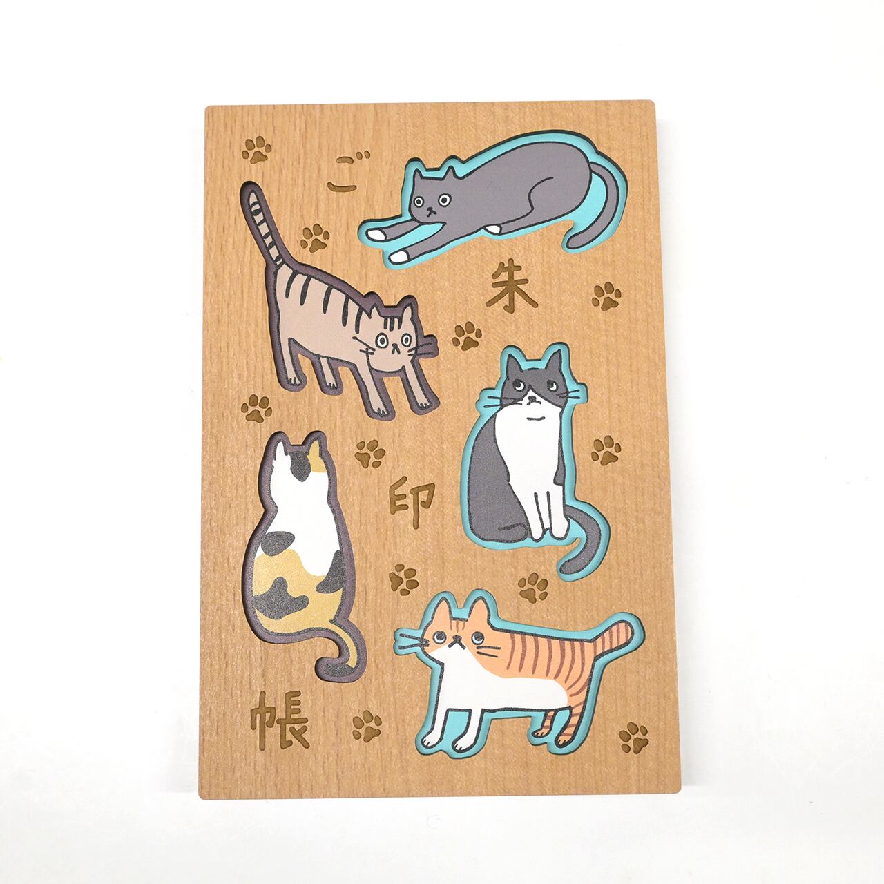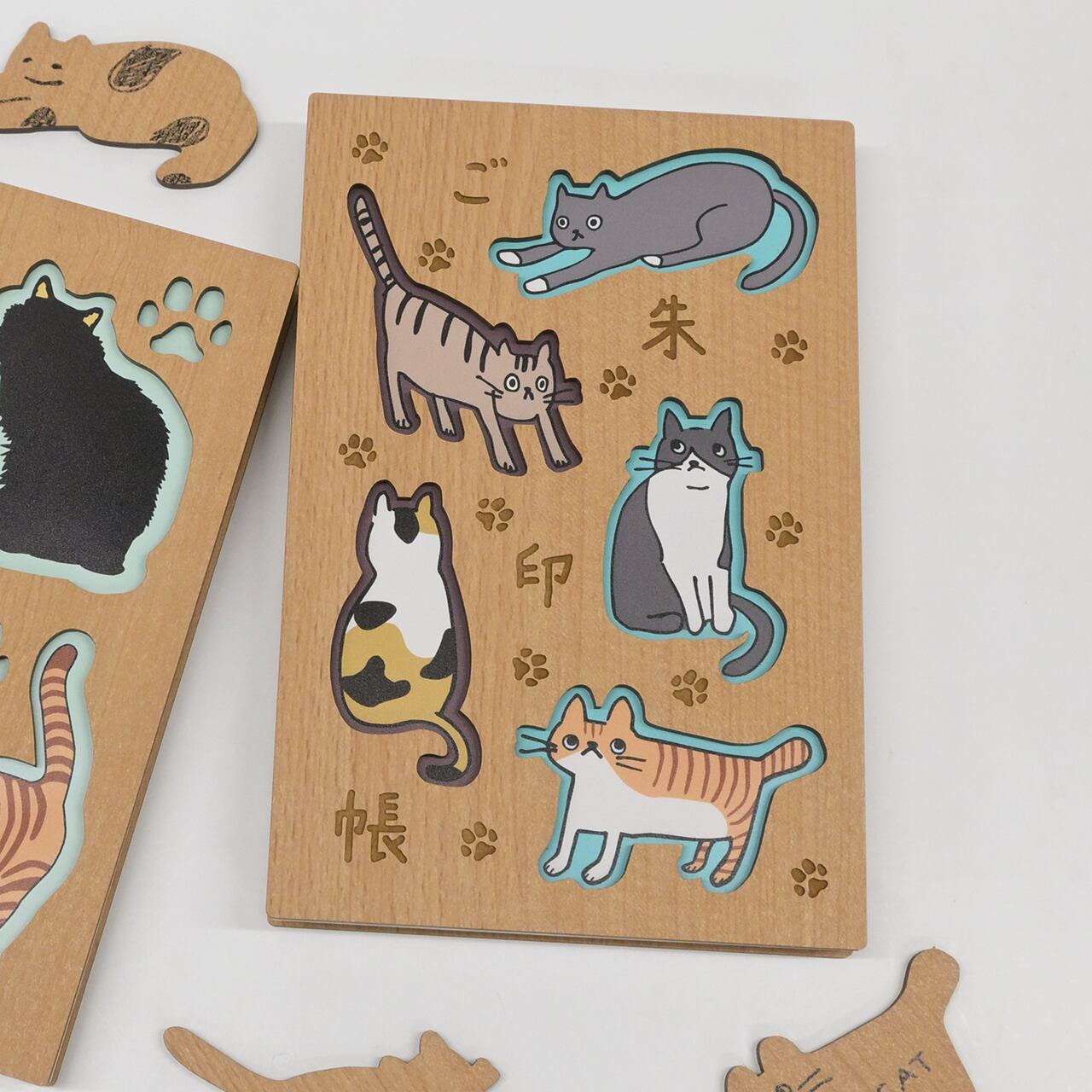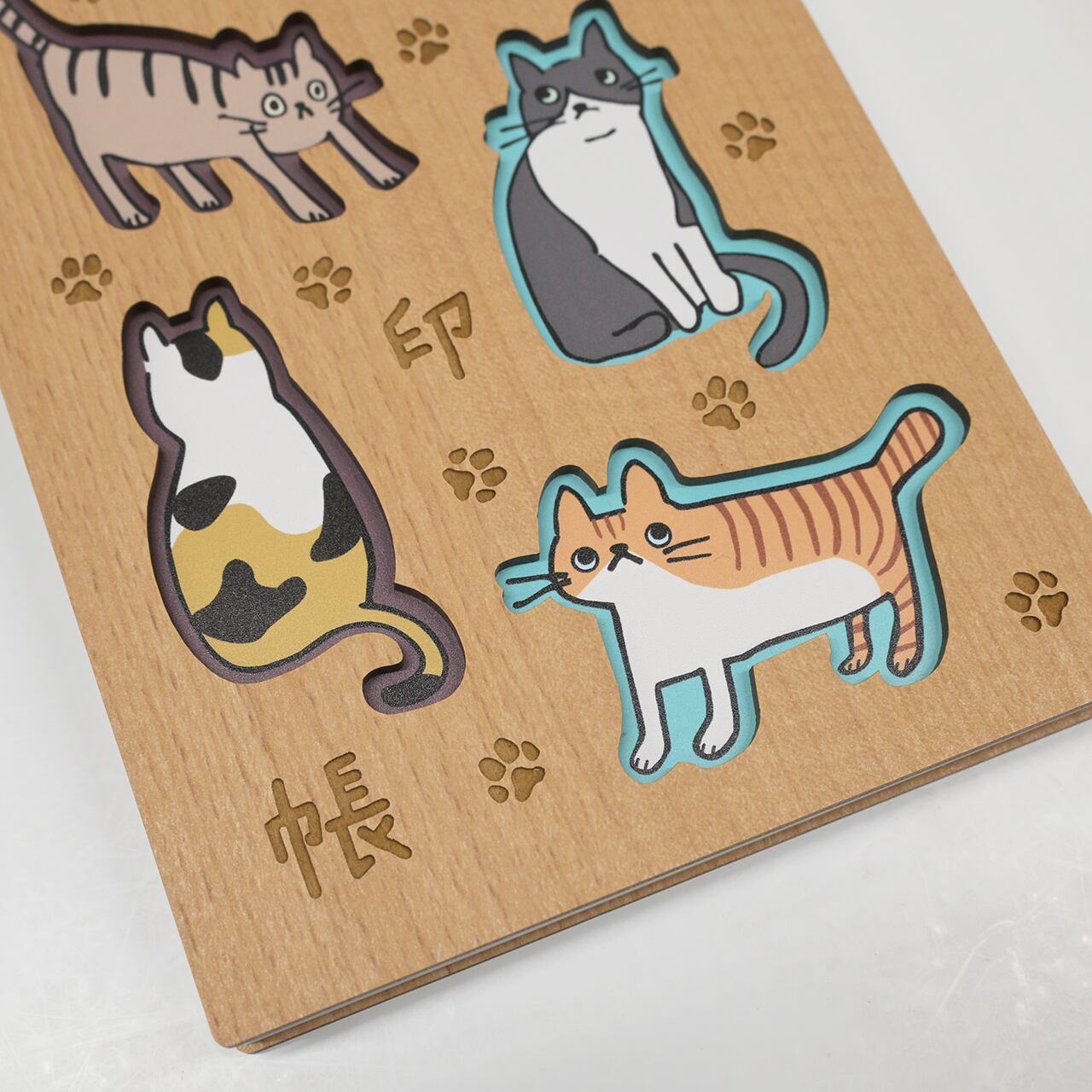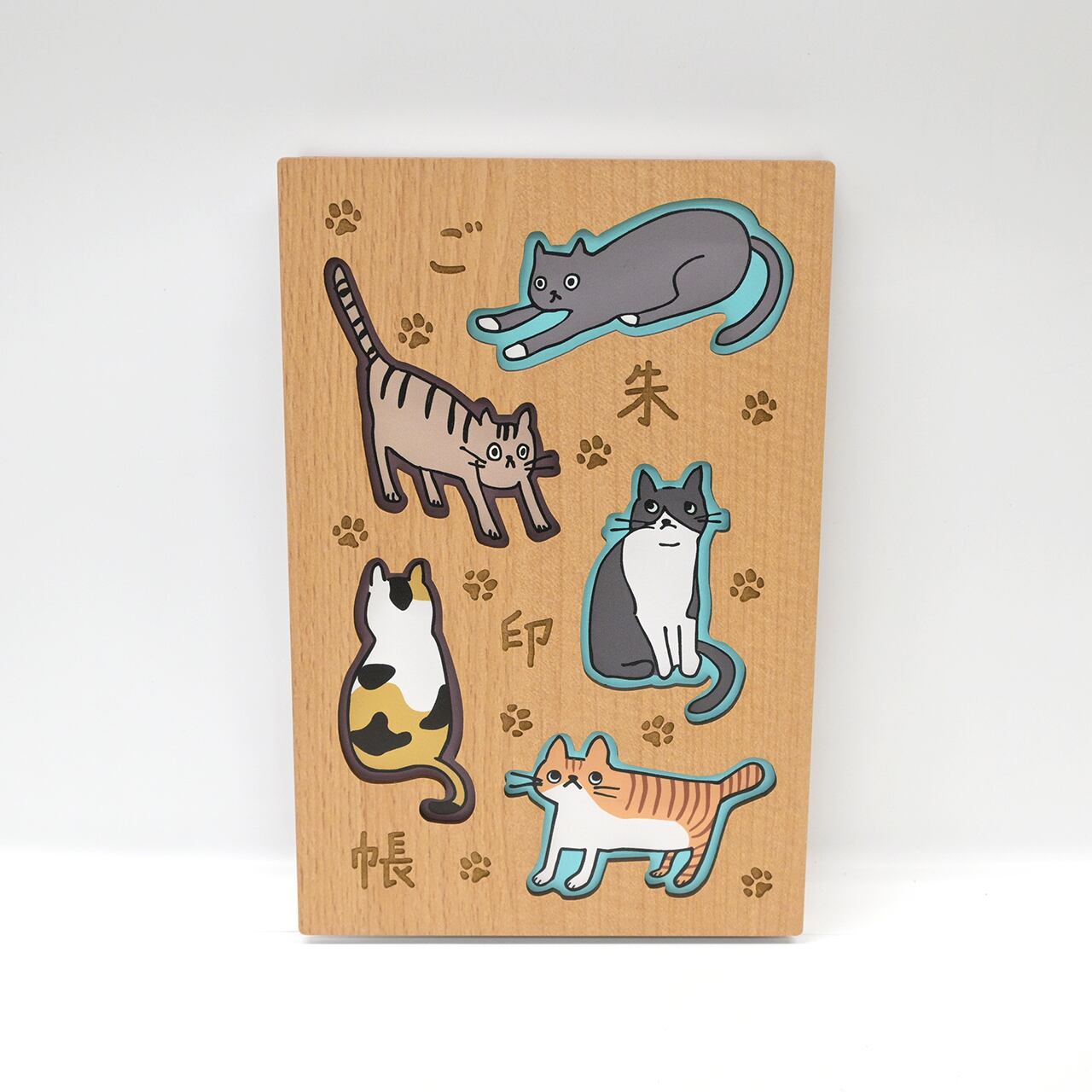 ゆるっとした猫たちが、あなたの御朱印めぐりにそっと寄り添う木製表紙の御朱印帳です。