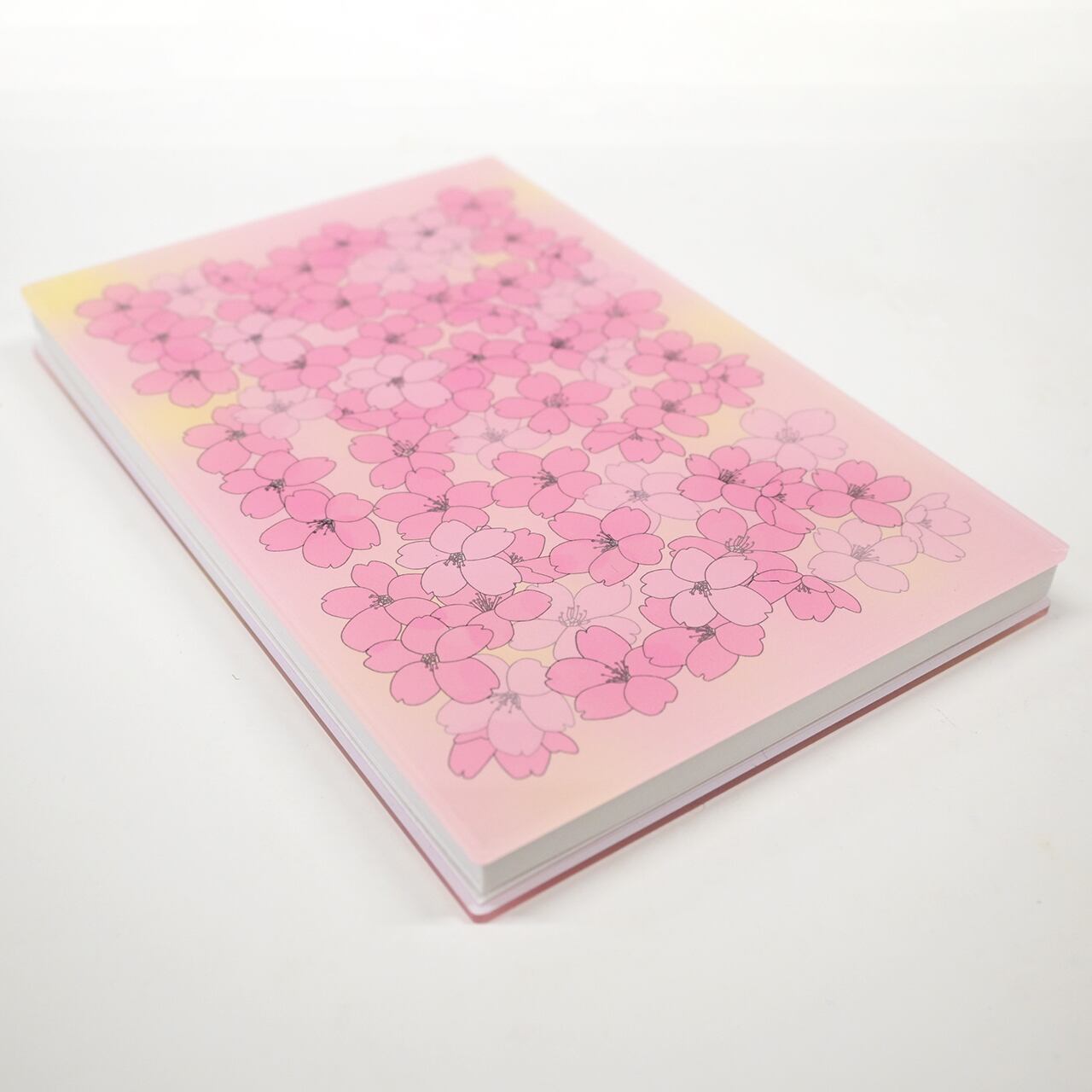 春色の桜が浮かぶクリア御朱印帳「 桜 アクリル 御朱印帳 」 光に透ける満開の桜がきらめく透明デザイン シール帳 旅ノートにも