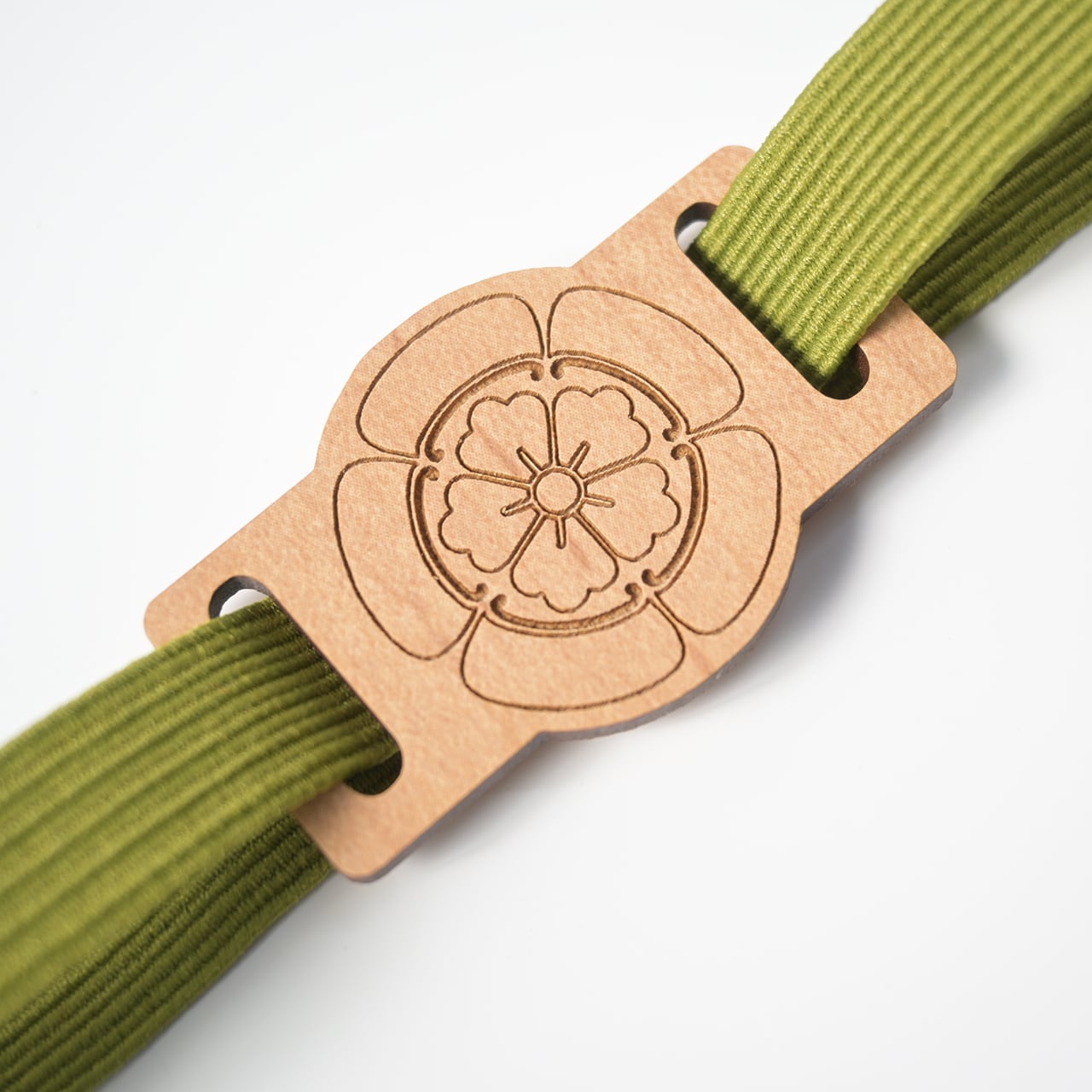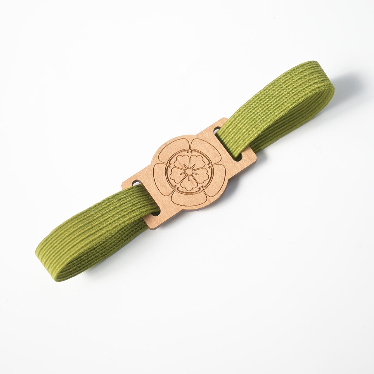 本体はレーザー加工を施した木材(MDF)を使用し、温かみのある質感と耐久性を兼ね備えています。ゴムはライクラ®ファイバーのカラーゴムを使用。しっかりフィットしながらも柔らかく、長く使っても伸びにくいです。