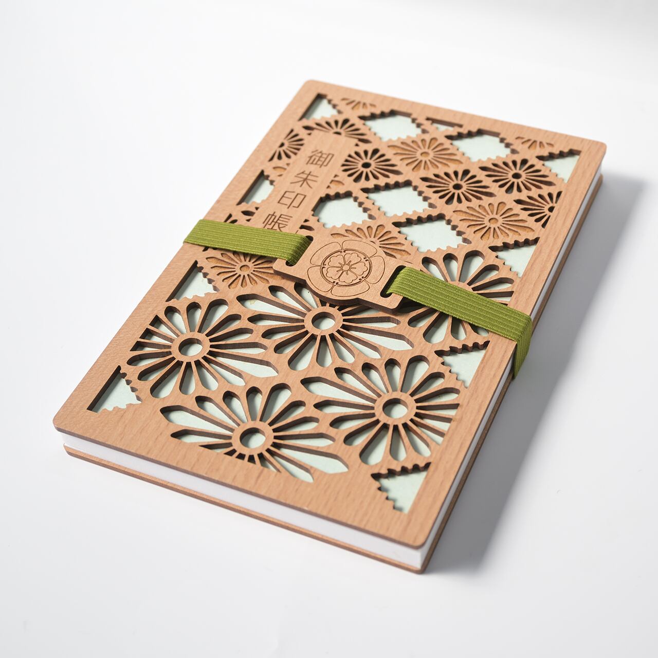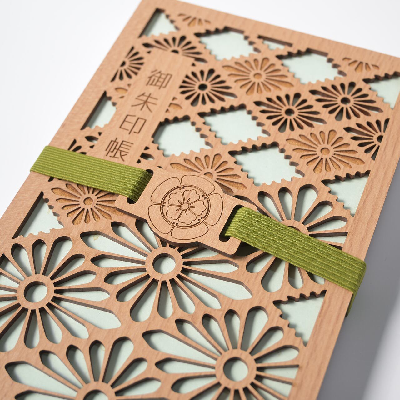 木のぬくもりと家紋の凛とした佇まいが、御朱印帳を特別な一冊にしてくれます。